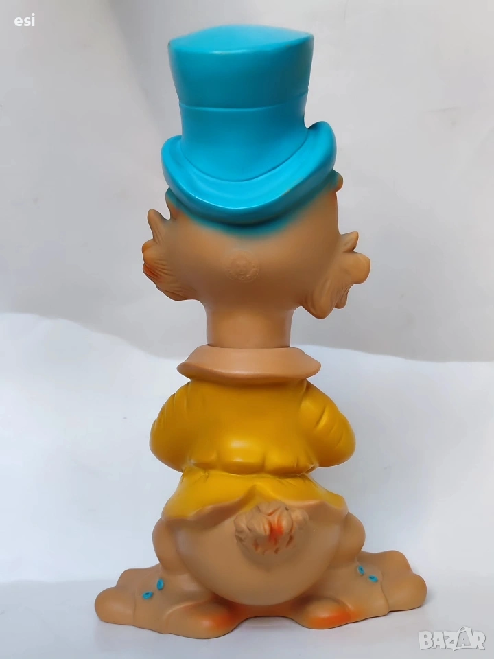 Рядка гумена играчка Скрудж Макдак (Чичо Скрудж) от Дисни Основни характеристики Произведена Biserka (Загреб, бивша Югославия) през 60-те или 70-те години на миналия век. Част от серията "Paperone col Sacco" (Скрудж с чувал) Материал: Изработена е от гума Колекционерска стойност Цена 100 €