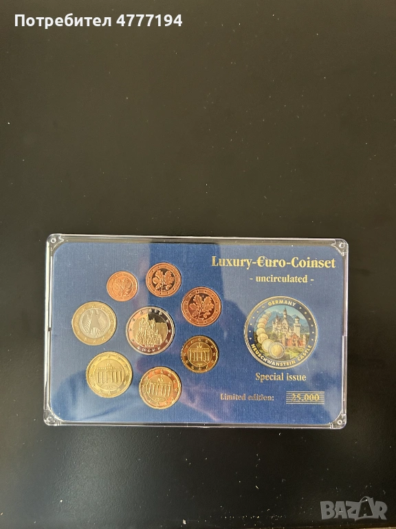 Продавам луксозен , лимитиран сет монети- 25000 бр., с включена монета със замъка Нойшванщайн-2012 г.