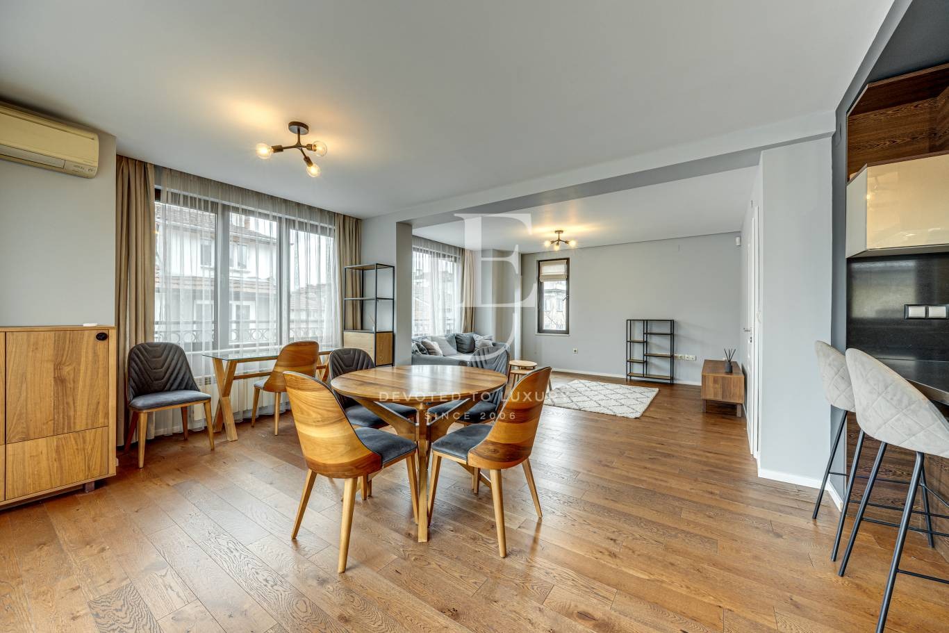 Юник Естейтс предлага на вашето внимание луксозен, дизайнерски и много просторен апартамент в сърцето на града, само на метри от бул. Витоша. Жилището се намира в нова сграда с асансьор и разполага с две подземни паркоместа.
