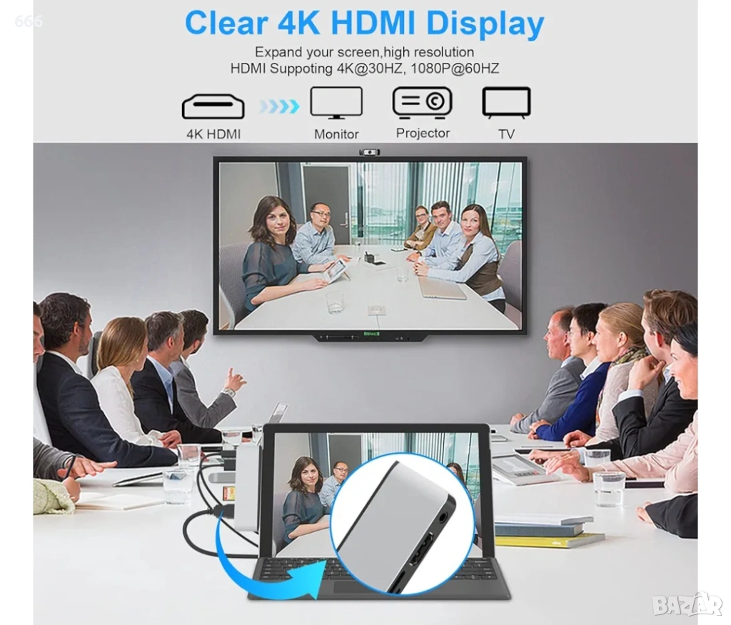 4K HDMI адаптер за Surface Pro 11/Pro 10/Pro 9/Pro X: Този USB-C хъб за Surface Pro 9 поддържа видео резолюция до 4K@ 30Hz, като обратно поддържа резолюции 2K/1080p/720p/480p/360p. Показвайте свободно видео с висока резолюция 4K UHD@ 30Hz или Full HD 1080P от вашия лаптоп на HDTV, монитор или проектор чрез HDMI порт, осигурявайки ви визуално удоволствие с ултрависока разделителна способност.♥Забележка: Хъбът е наличен и за Surface Pro X, със същите функции като Surface Pro 10/Pro 9.