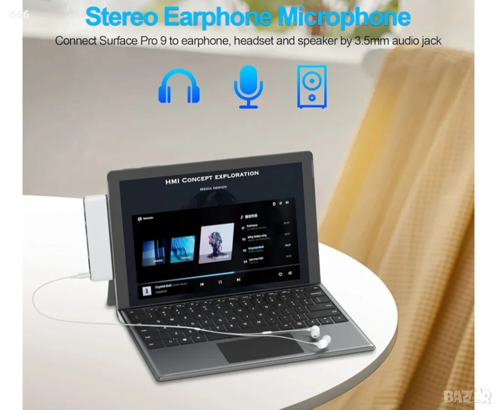 Аксесоари за Microsoft Surface Pro 9/10/11 с 3,5 мм аудио изход: Докинг станцията MS Surface Pro 9 разполага с 3,5 мм жак. Насладете се на слушането на любимата си музика, използвайки кабелните си слушалки с класическия 3,5 мм кабел.