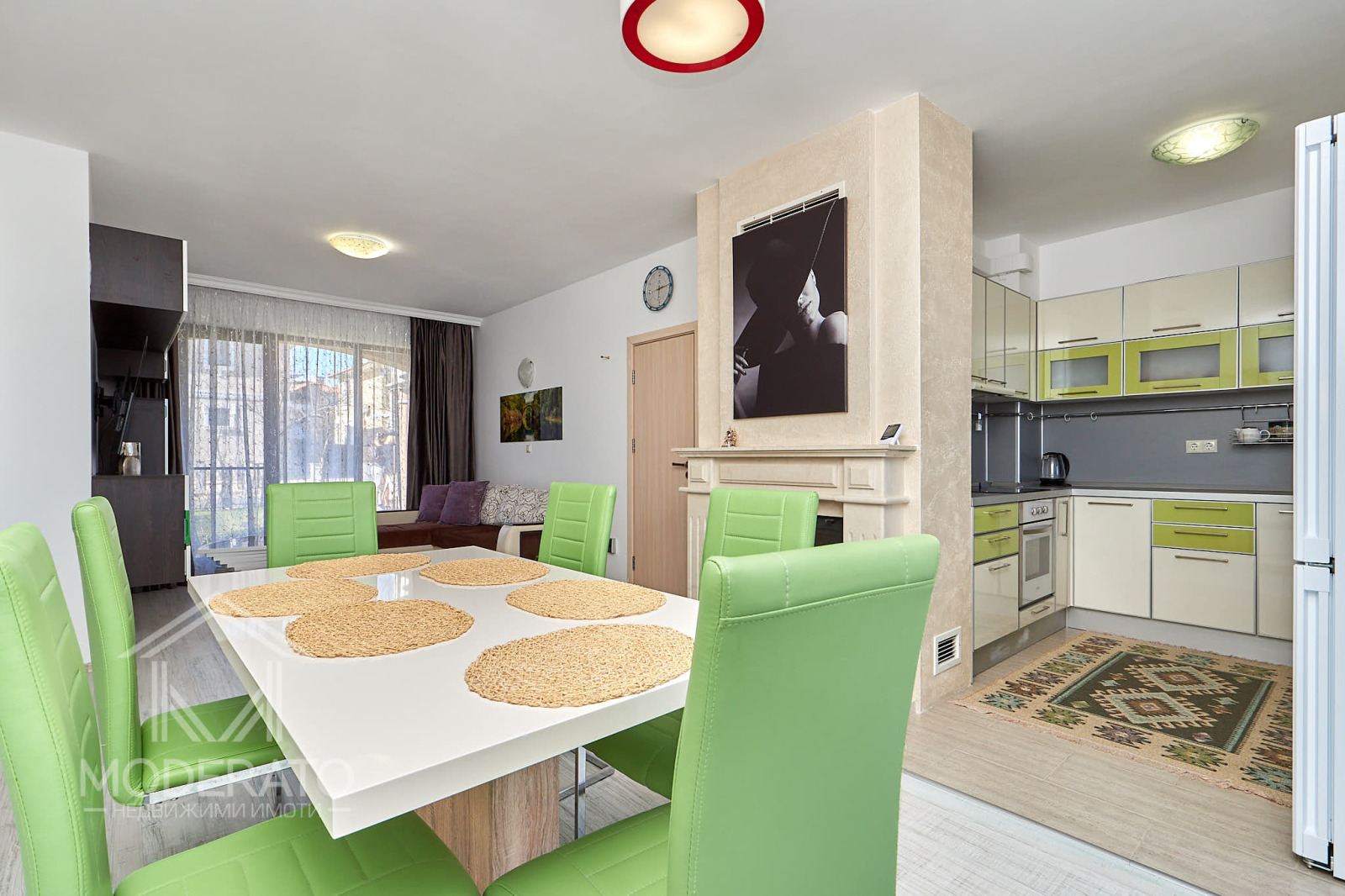 Имотът се продава напълно обзаведен и оборудван, готов за незабавно нанасяне или отдаване под наем. Разполага с подово отопление във всички помещения, климатици и камина, които осигуряват комфорт през всички сезони.