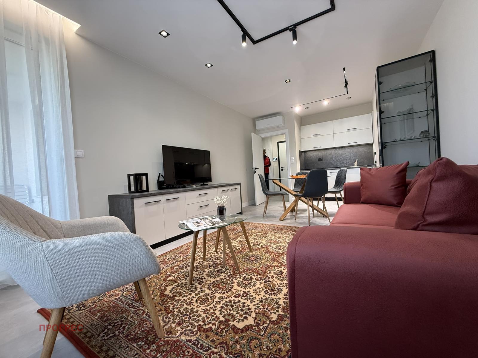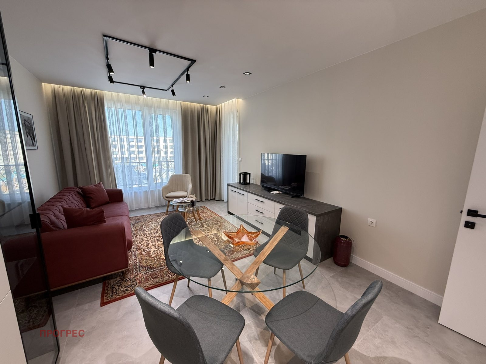 Апартаментът е чисто нов, обзаведен стилно и функционално с внимание към всеки детайл, и предлага уютна, модерна и светла жилищна среда.