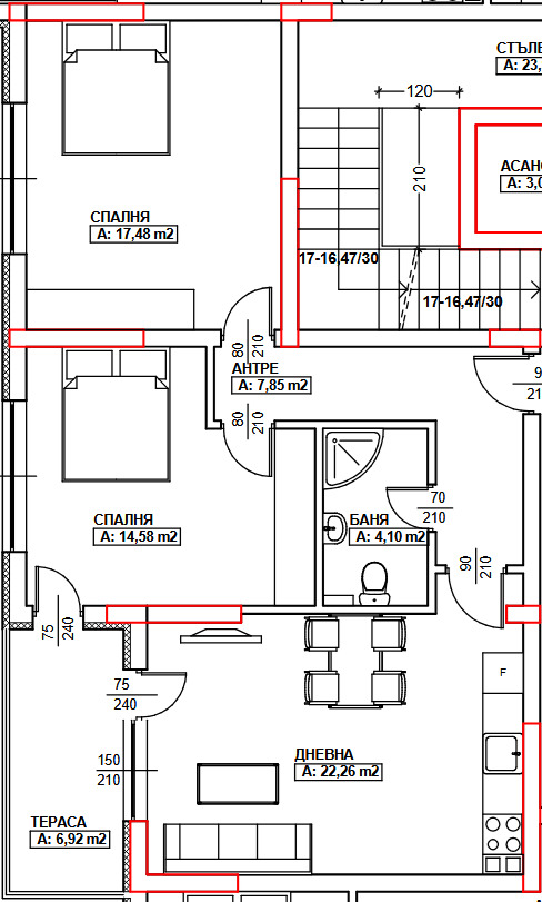 Със следното вътрешно разпределение на стаите и тяхната полезна (светла) площ:
