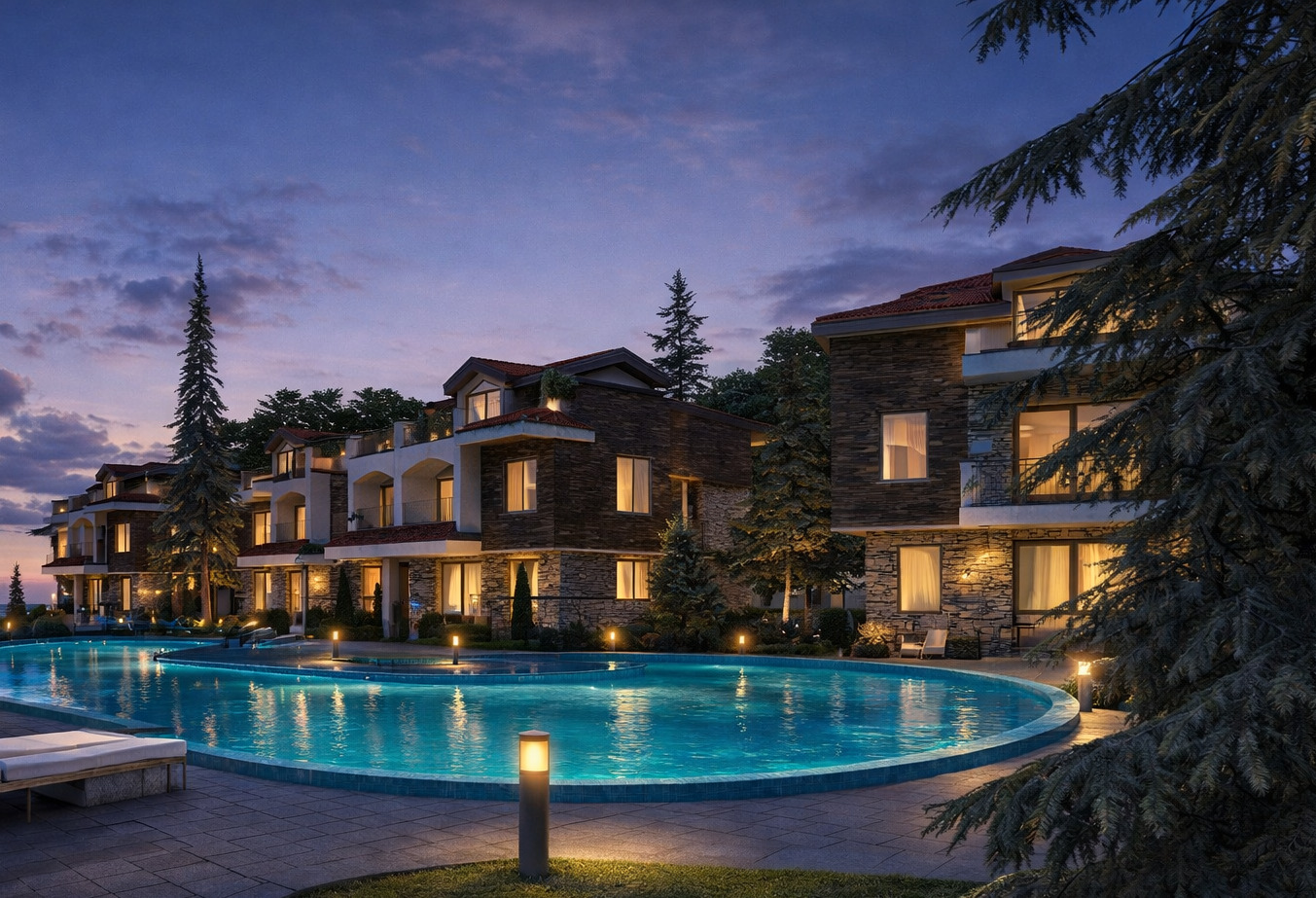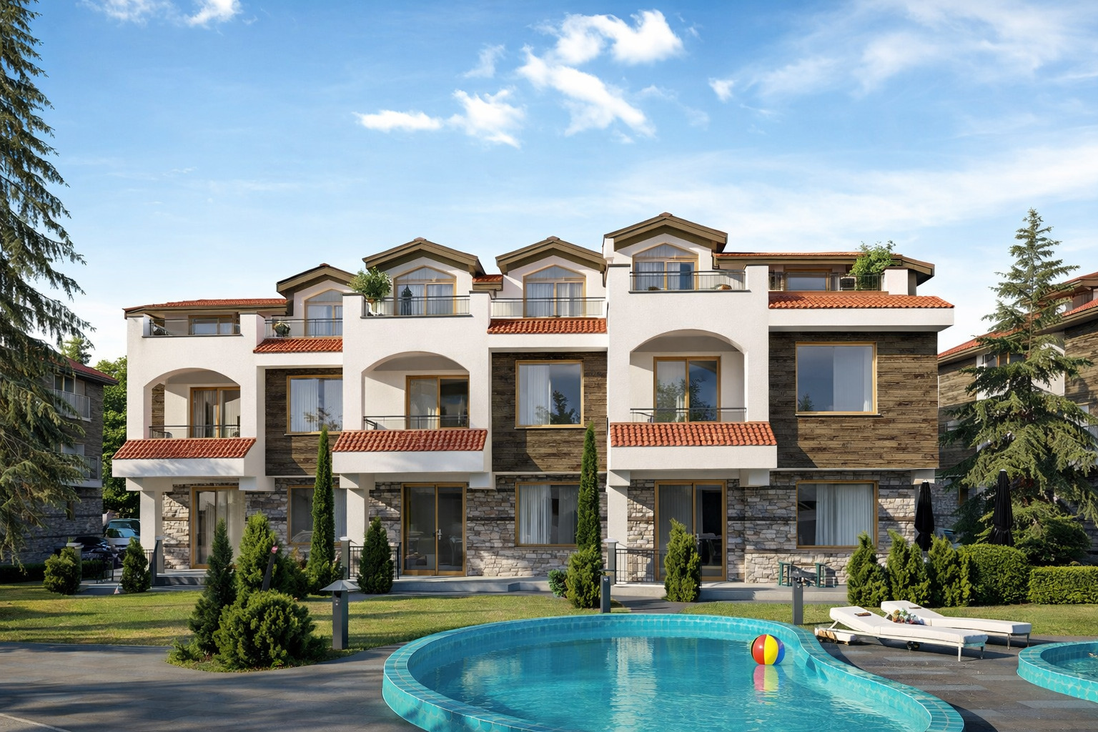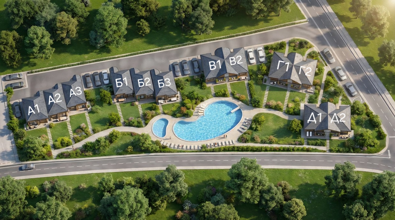 Комплексът ще разполага с голям открит басейн, предназначен за собствениците и техните гости.