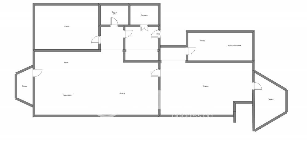 Възможност да се раздели апартамента с две входни врати и преустрои на студио с кухненски бокс, баня с тоалетна и балкон, изложение югоизток. Тристаен апартамент, с кухня, дневна, спалня, баня с тоалетна, балкон и преустройство с усвояване на тераса, с изложение югозапад.