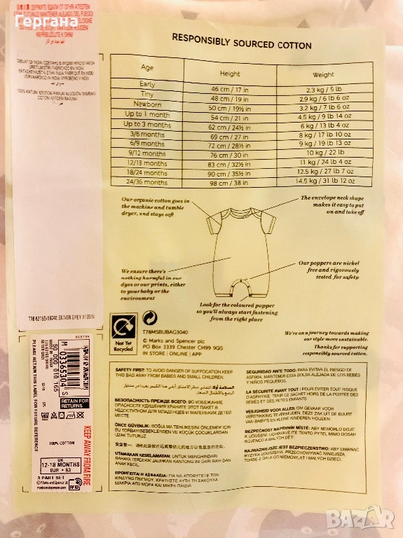 НОВ бебешки комплект 3 части Marks & Spencer (M&S) - 100% Памук, 12-18м. → Обява 54120210