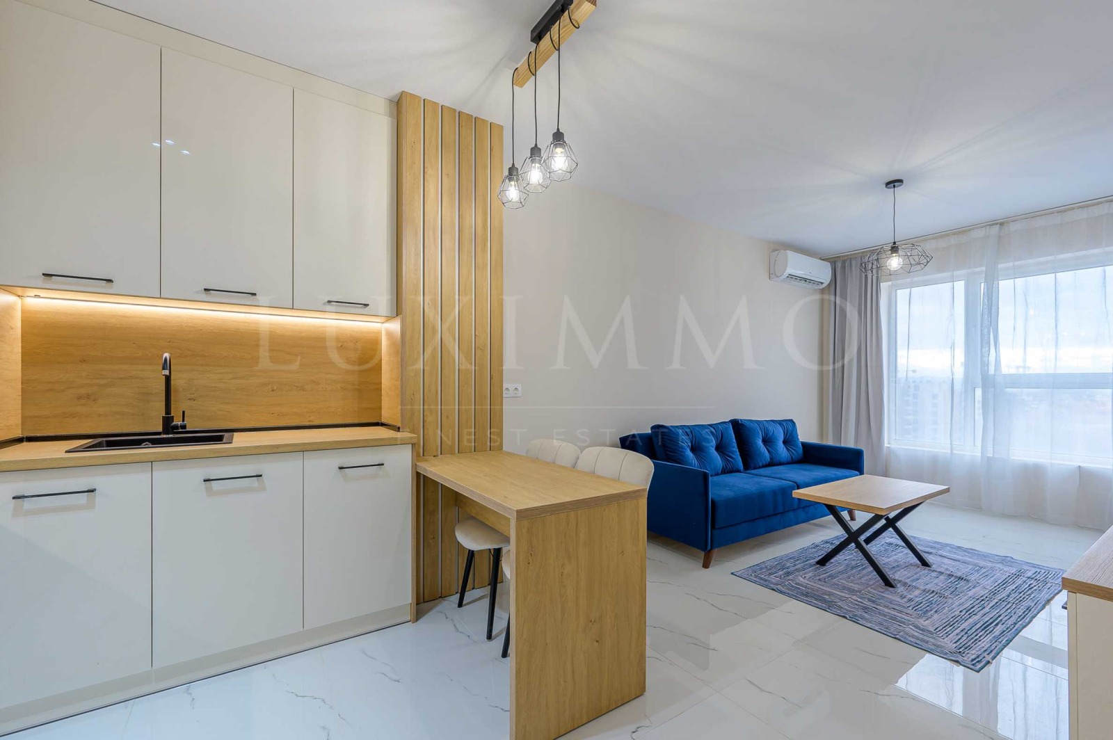 - Всекидневна с кухненска част и кът за хранене