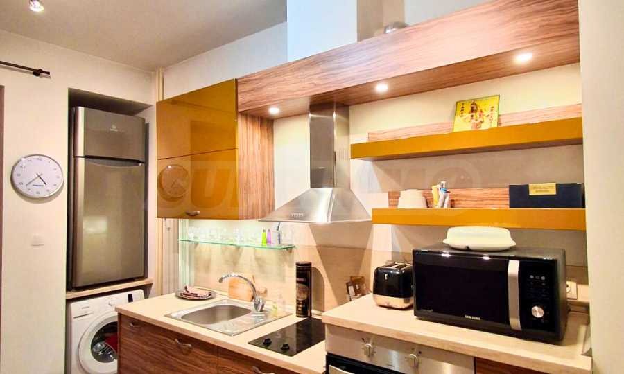 Апартаментът е изцяло реновиран и обзаведен по дизайнерски проект, с внимание към детайла и функционалността, като предлага и множество практични решения за съхранение.