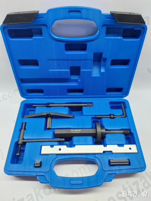 Комплектът съдържа основни инструменти за подмяна на ангренажния ремък при дизелови двигатели с верижно задвижване 1.8D TDi / TDCi