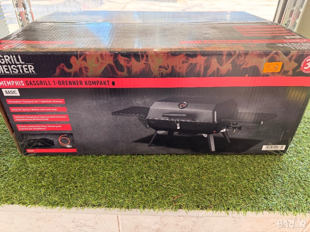 Печете на скара, където пожелаете – Компактен размер, идеален за градината, балкона или къмпинга Винаги перфектно готвене – Променливият контрол на температурата предлага пълен контрол на топлината Стартирайте мигновено – Пиезо запалването запалва пламъка с просто натискане ✓ Идеален за градината, балкона и в движение ✓ Оптимален контрол на температурата ✓ Безопасно пиезо запалване Насладете се на перфектно печене на скара, където и да сте: Газово барбекю GRILLMEISTER Независимо дали сте в градината, на компактен балкон или сред природата: това мощно настолно барбекю с горелка от неръждаема стомана е вашият идеален партньор. Благодарение на лекия си дизайн и сгъваемите странични рафтове, можете без усилие да се насладите на печенето на скара навсякъде за вкусно ястие. Вашите предимства Печете на скара, където пожелаете – Компактен размер, идеален за градината, балкона или къмпинга Винаги перфектно готвене – Променливият контрол на топлината предлага пълен контрол върху температурата Стартирайте мигновено – Електрическото пиезо запалване запалва пламъка с просто натискане Спестете време за почистване – Тавата за мазнини е сваляема за бърза поддръжка Лесно транспортиране – Сгъваемите крака и лекият дизайн улесняват носенето за дръжката Винаги правилната температура Благодарение на вградения термометър в капака можете да следите отблизо температурата без загуба на топлина. Това ви позволява перфектно да запържите месо или да готвите зеленчуците си на идеалната температура Максимална мобилност С тегло само 5,5 кг и със сгъваеми компоненти, можете да вземете това барбекю навсякъде. Страничните рафтове осигуряват допълнително работно пространство и се сгъват за транспортиране. Дълготрайна производителност при готвене Решетката и горелката от неръждаема стомана осигуряват дълъг експлоатационен живот и оптимална хигиена. Материалът е устойчив на топлина и е много лесен за почистване след употреба. Бързо и безопасно запалване Не са необходими повече кибрит или запалки. Пиезоелектрическото запалване генерира безопасна искра, позволявайки на мощната горелка от 3,6 kW да стартира мигновено за вашето барбекю. Интелигентно съхранение Липсата на място е нещо от миналото. Това настолно барбекю съчетава голяма повърхност за готвене 44,5 x 34,5 см с интелигентен дизайн, който заема минимално място в гаража или багажника.