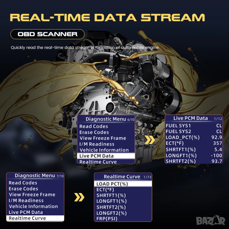 ✔️ Показва данни в реално време – следиш работата на двигателя на живо