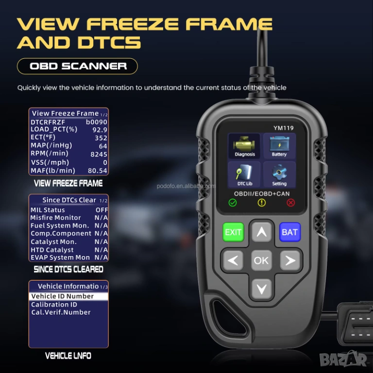 ✔️ Поддържа 9 основни OBDII/EOBD протокола – гарантира безпроблемна работа с различни марки и модели