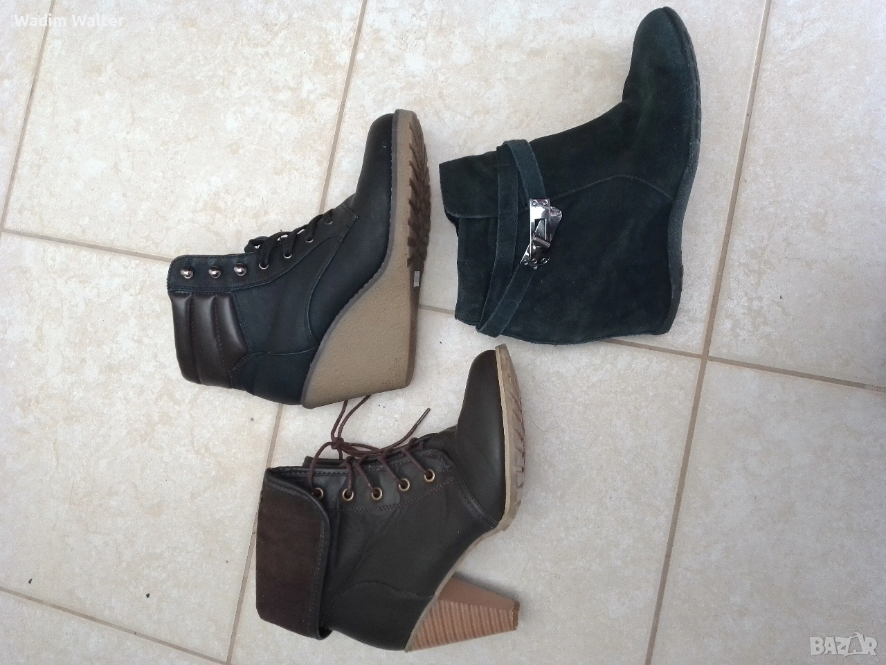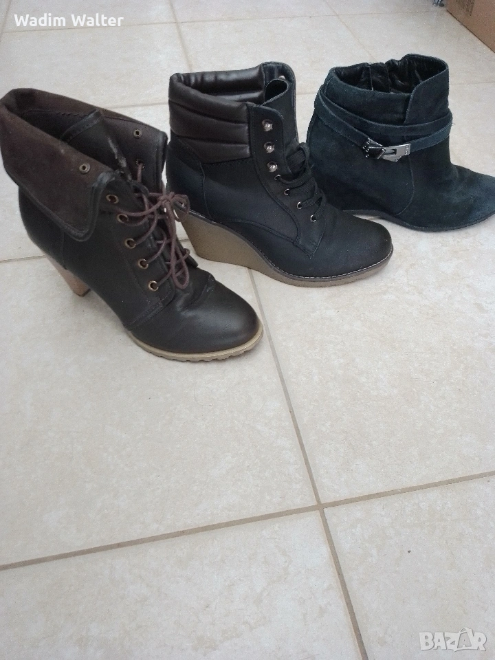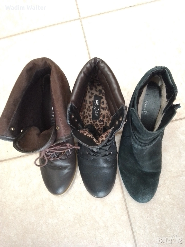 Продавам три броя дамски обувки, частично кожени, размер 39.