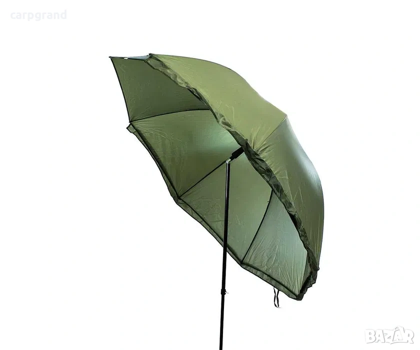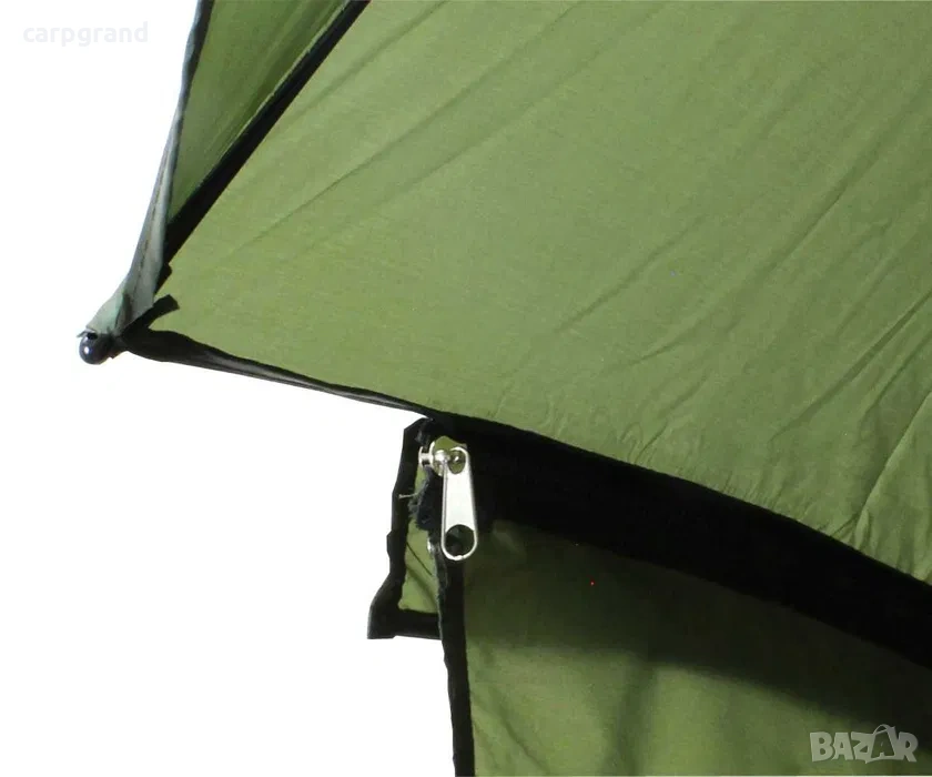 Комбиниран чадър-палатка, оборудван с подвижно странично платнище, което предлага допълнителна защита и комфорт по време на риболов и къмпинг. Прикрепянето на допълнителната стена става с помощта на цип, с който лесно се захваща по краищата на чадъра. Страничното платнище разполага с два прозрачни PVC прозореца и отворен вход. В комплекта има шест въженца и 6 колчета, с които може да изпънете заслона за максимална стабилност при наличие на вятър. Моделът разполага с устойчиви 3.5 мм рейки, може да се регулира по височина до 2 m, а също и да се накланя чрез чупещата основна ос.