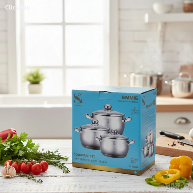 Комплект тенджери Swissgold EMMIE (SG-18099) – 3 броя с 5-слойно капсуловано дъно, снимка 1 - Съдове за готвене - 54120786 Комплект тенджери Swissgold EMMIE (SG-18099) – 3 броя с 5-слойно капсуловано дъно, снимка 2 - Съдове за готвене - 54120786 Комплект тенджери Swissgold EMMIE (SG-18099) – 3 броя с 5-слойно капсуловано дъно, снимка 3 - Съдове за готвене - 54120786 Комплект тенджери Swissgold EMMIE (SG-18099) – 3 броя с 5-слойно капсуловано дъно, снимка 4 - Съдове за готвене - 54120786 Комплект тенджери Swissgold EMMIE (SG-18099) – 3 броя с 5-слойно капсуловано дъно, снимка 5 - Съдове за готвене - 54120786 Комплект тенджери Swissgold EMMIE (SG-18099) – 3 броя с 5-слойно капсуловано дъно, снимка 6 - Съдове за готвене - 54120786 Комплект тенджери Swissgold EMMIE (SG-18099) – 3 броя с 5-слойно капсуловано дъно, снимка 7 - Съдове за готвене - 54120786 Комплект тенджери Swissgold EMMIE (SG-18099) – 3 броя с 5-слойно капсуловано дъно, снимка 8 - Съдове за готвене - 54120786 Комплект тенджери Swissgold EMMIE (SG-18099) – 3 броя с 5-слойно капсуловано дъно, снимка 9 - Съдове за готвене - 54120786 1/9