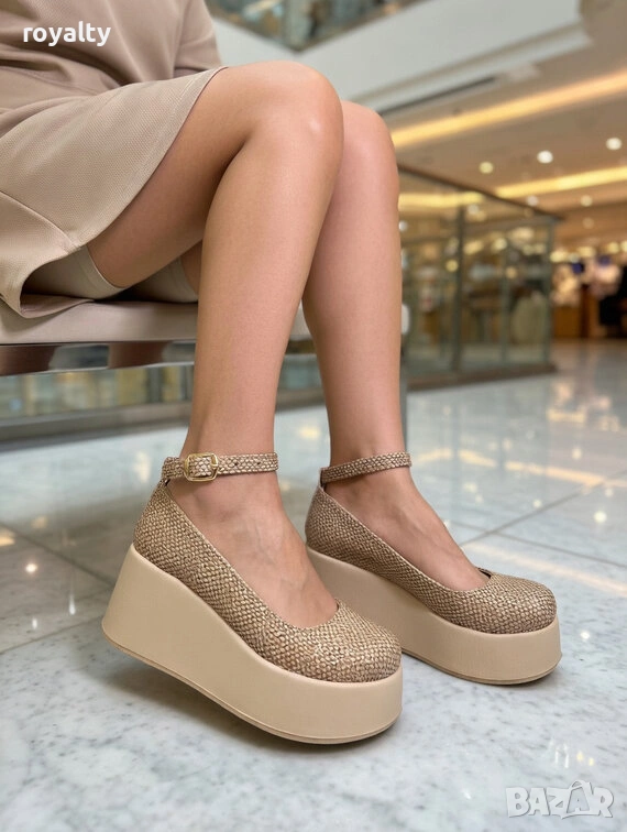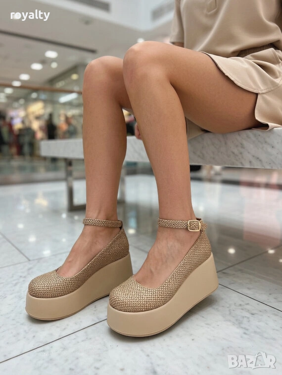 Обувки на платформа - бежови тип плетка → Обява 54120833