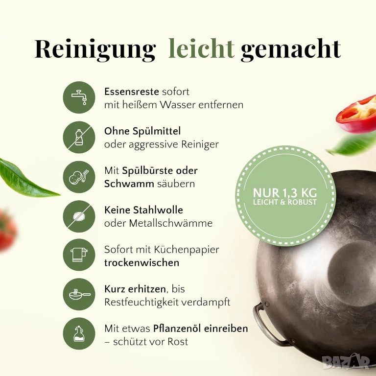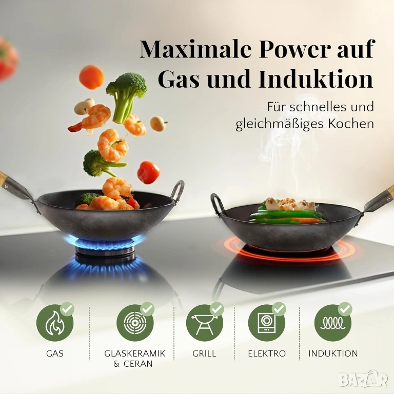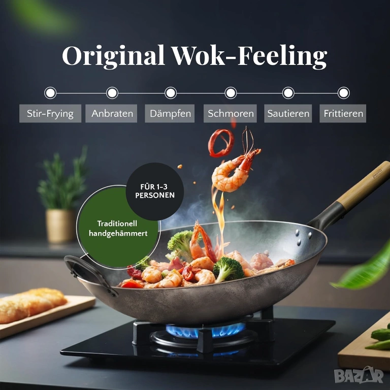 Тиганът е много здрав и загрява равномерно – идеален за готвене като в ресторант така и удома.