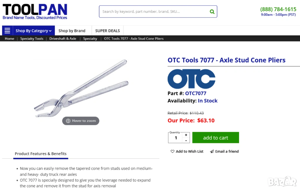 Оригинал OTC Американски КЛЕЩИ 225мм за Конуси на Шпилки Полуоси Преден Заден Мост Автомобили БАРТЕР