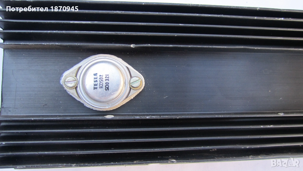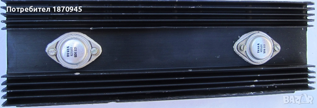 Продавам алуминиев радиатор с два броя транзистори KD503. Размерите са 250/80/30 мм и са пресместнати за нормално охлаждане на транзисторите.