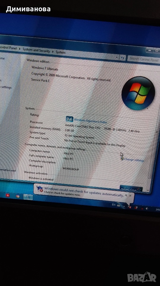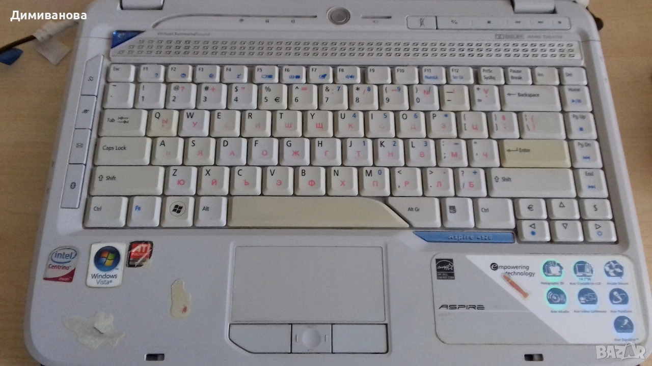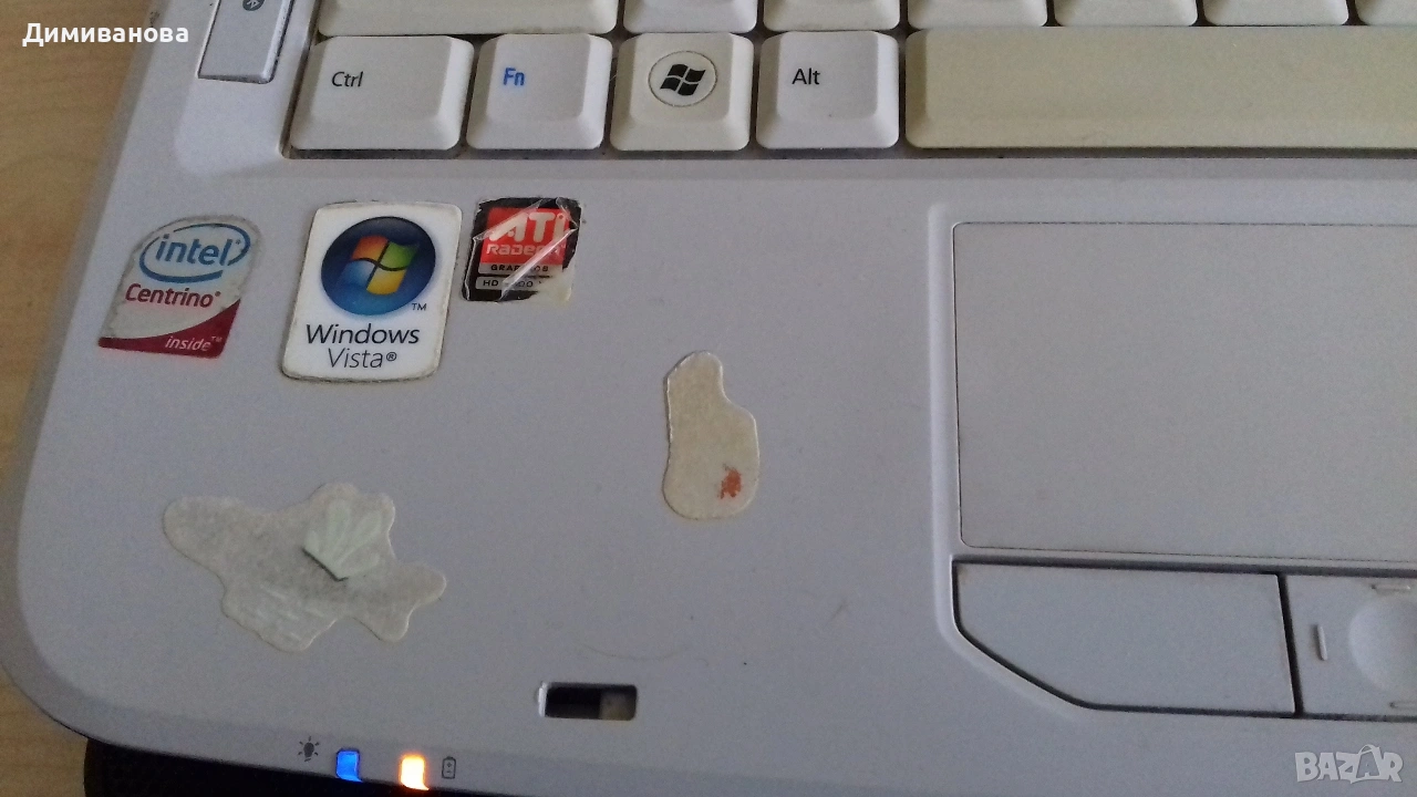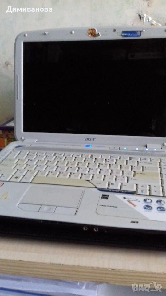 Продавам лаптоп Acer 4920, подходящ за части или ремонт. Лаптопът работи, но има следните проблеми: