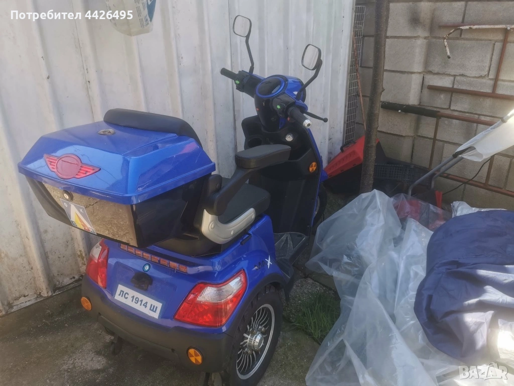 електрическа триколка. Има добавен голям багажник и сменени батерии през октомври, миналата година. Използвана е малко, а причината за продажба е това, че вече не влиза в приложение. Подарява се и покривалото от последната снимка.