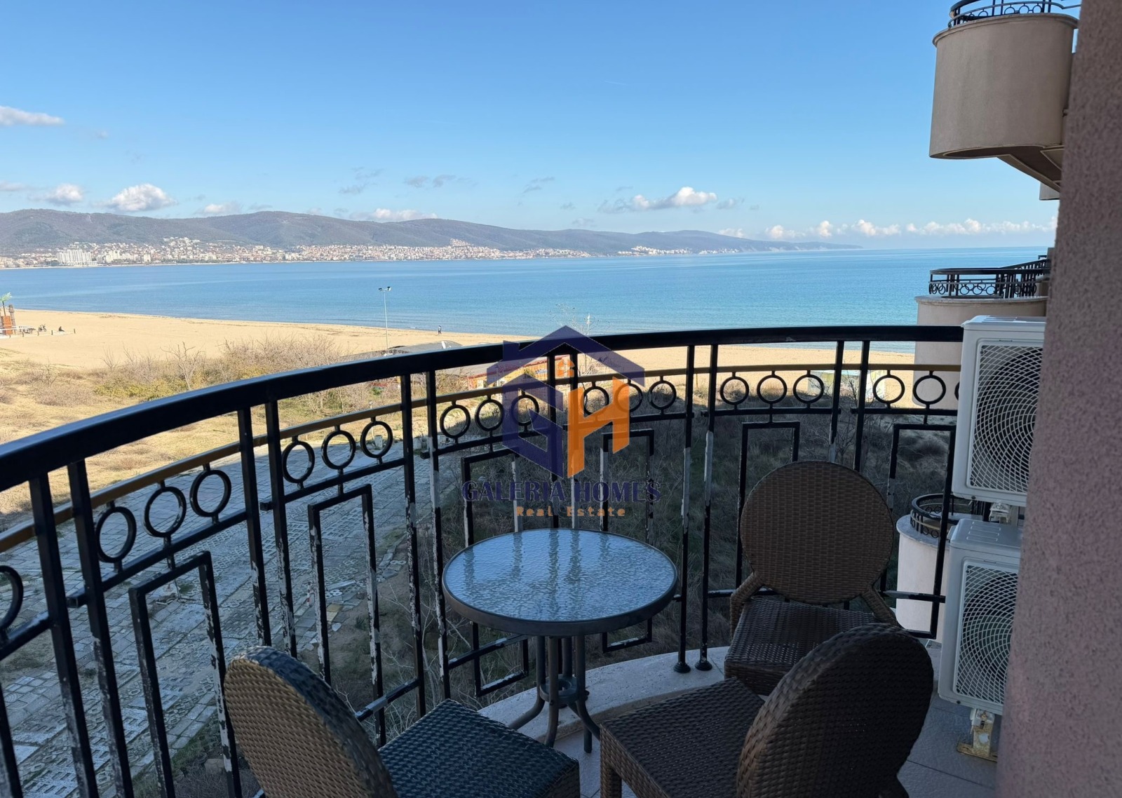 Галерия Имоти Ви предлага за продажба тристаен обзаведен апартамент на Първа Линия с Уникална Морска Панорама в к-с Голдън Рейнбоу, Слънчев бряг.