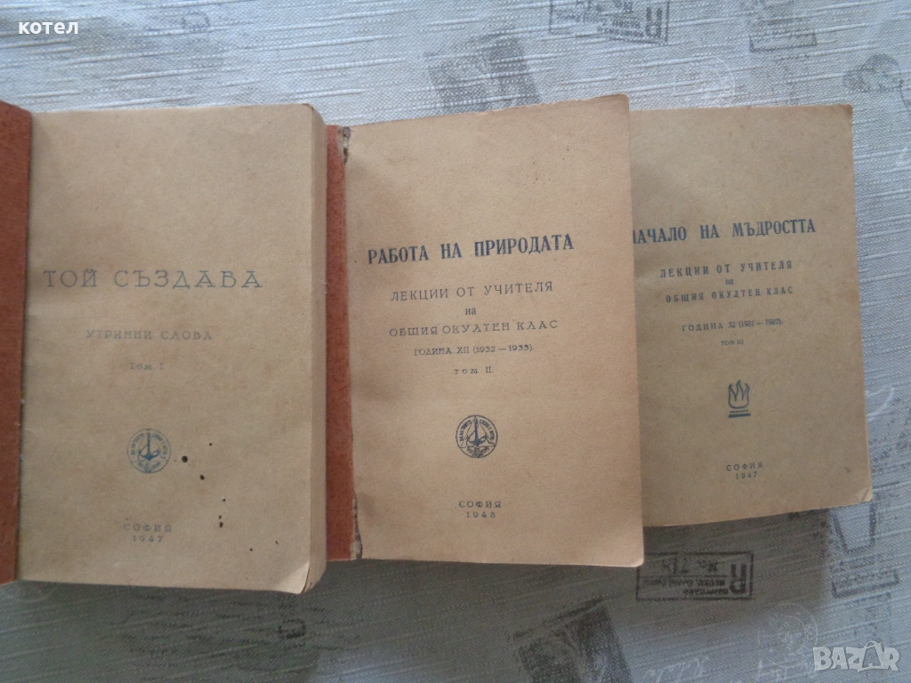 Продавам три ценни антикварни издания с беседи и лекции на Учителя Петър Дънов. Книгите са от края на 40-те години, издадени от печатница „Житно зърно“, София. Подходящи за колекционери и последователи на Бялото братство.