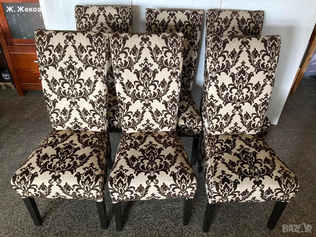 Шест тапицирани стола за трапезария, снимка 1 - Столове - 54122130 Шест тапицирани стола за трапезария, снимка 2 - Столове - 54122130 Шест тапицирани стола за трапезария, снимка 3 - Столове - 54122130 Шест тапицирани стола за трапезария, снимка 4 - Столове - 54122130 1/4