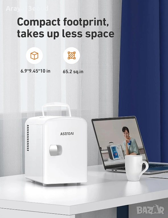 AstroAI Mini Fridge 4L е практичен и компактен мини хладилник, създаден за съхранение на напитки, храна, козметика и продукти за грижа за кожата. С модерен дизайн и лесна преносимост, той е идеалното решение за използване у дома, в офиса, колата или при пътуване.