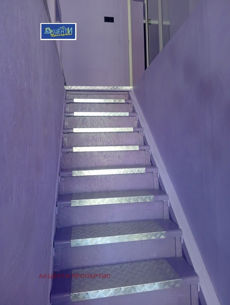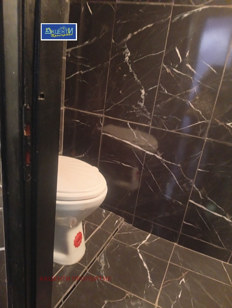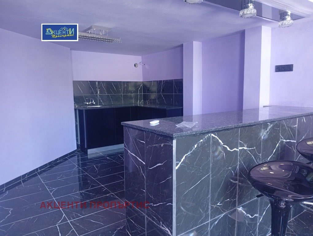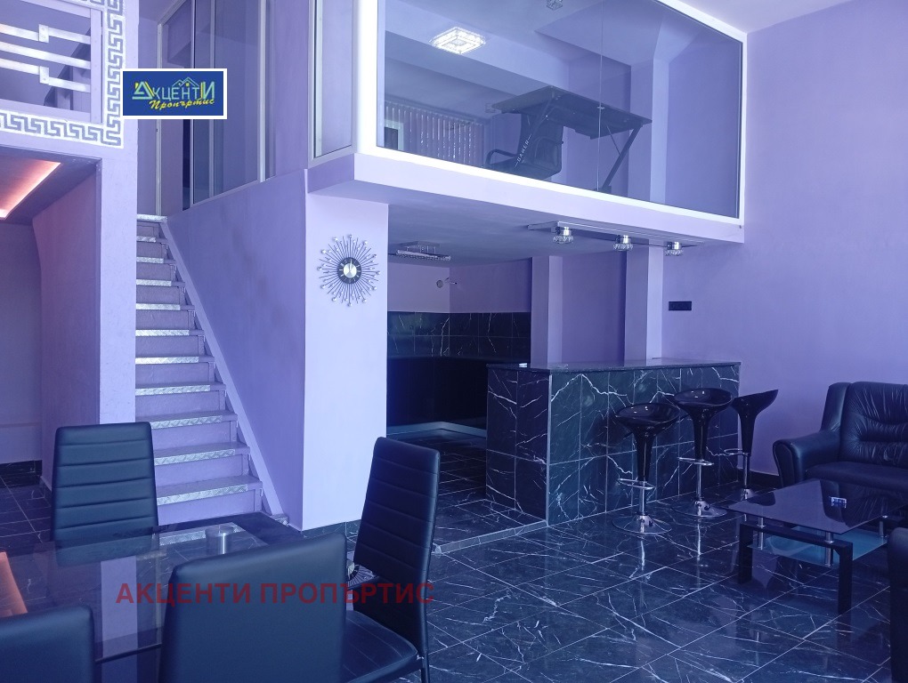Агенция за недвижими имоти Акценти Пропъртис Ви предлагаме помещение на две нива, с площ от 100кв.м., разположено в центъра на гр.В.Търново.Първото ниво е с площ от 55кв.м. и се състои от едно високо помещение с обособена кухненска част, коридор, санитарен възел/баня с тоалетна/.Вътрешна стълба води до второто ниво, където и разположена голяма спалня, мокро помещение/пералня/ и баня с тоалетна.Има възможност за монтиране на климатици и боядисване на помещението.Възможност да се отдава както с наличното обзавеждане, така и свободно от мебели.Възможност за промяна на статут!Лесно за обясняване, помещението е подходящо за магазин, офис, живеене, кабинет козметичен салон и др.Номер на офертата 7426.
