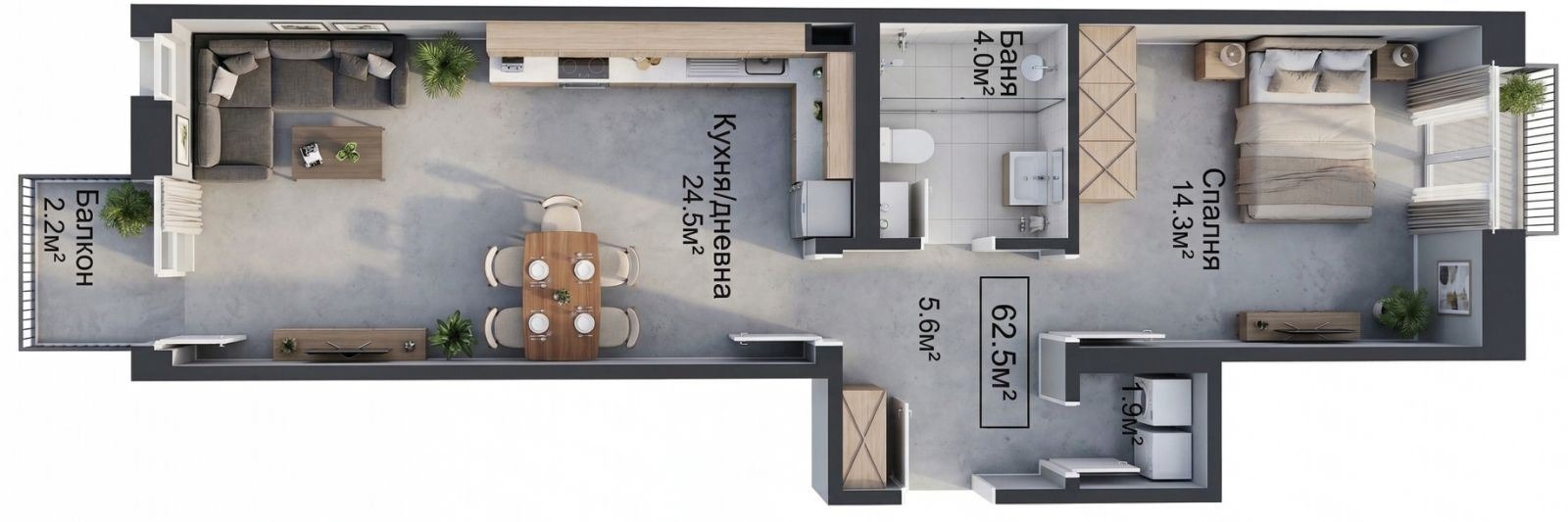 Просторна всекидневна с кухненски бокс и излаз на уютна източна тераса;
