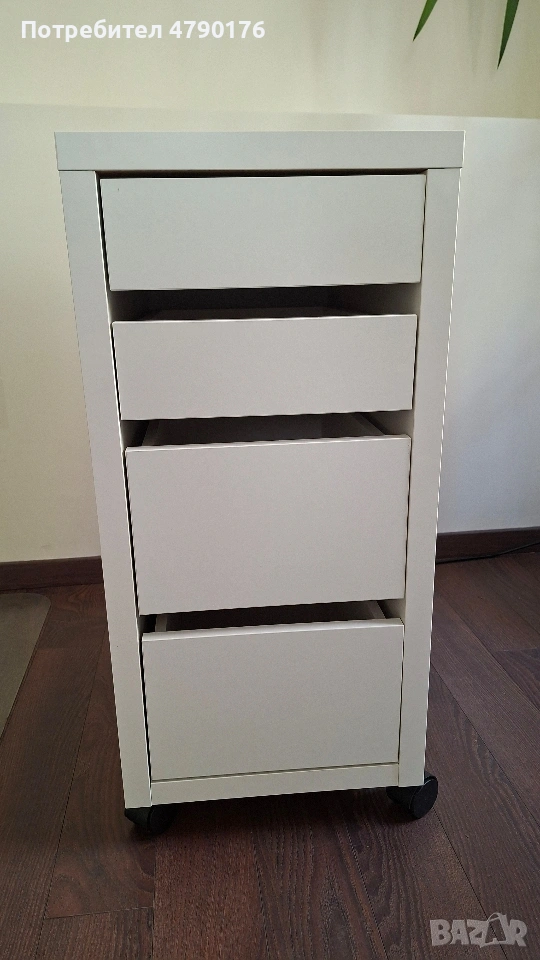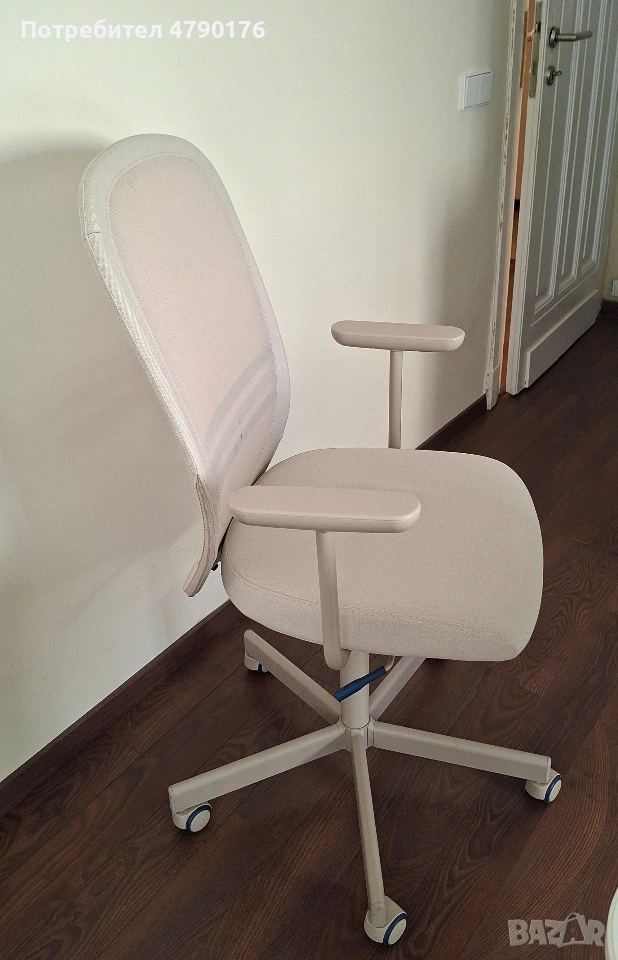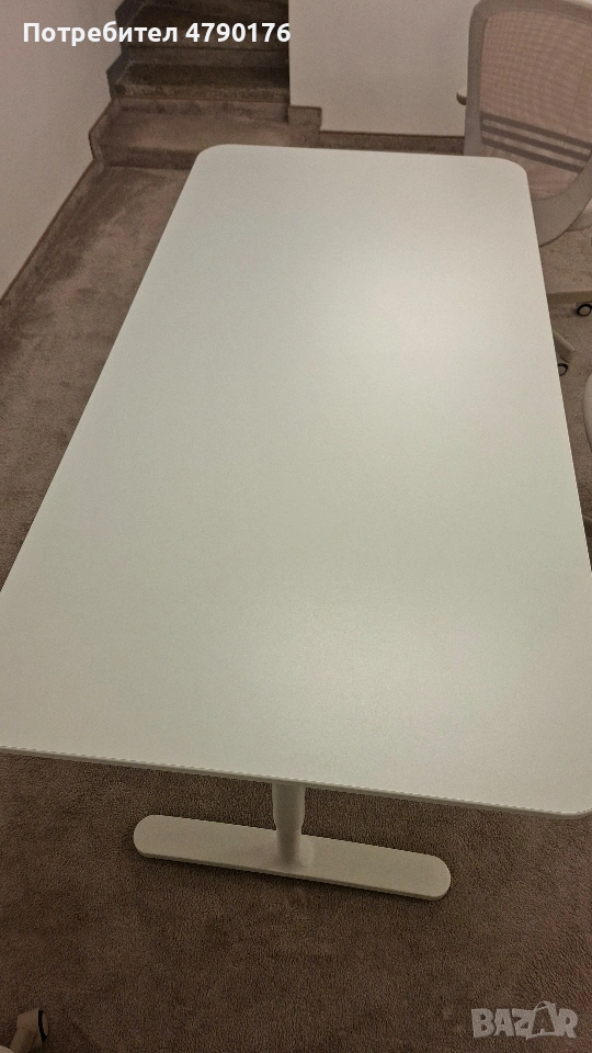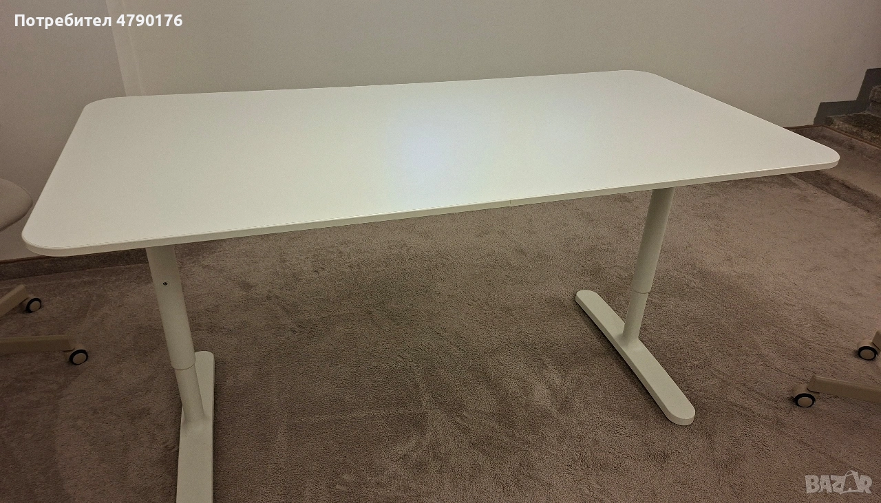 Икеа с регулируема височина и подвижни колела. Удобен и практичен за работа в офис или у дома- 90 евро. Налични 9 бр. 2. Модерна бяла маса/ бюро от Икеа, малко с размер 120×80 см- 180 евро. Налични 5 бр. 3. Контейнер за документи бял от Икеа 35х75 см.- 60 евро. Налични 4 бр. 4.Бял шкаф голям от Икеа 140х37х75- 190 евро. Налични 2 бр. 5. Табуретка, регулираща се височина, бяла- 90 евро. Налична 1 бр. 6. Голяма бяла маса/ бюро 160х80 см- 220 евро. Налични 2 бр. Някои са ползвани, повечето са нови. При закупуване на всички ще договорим пакетна цена