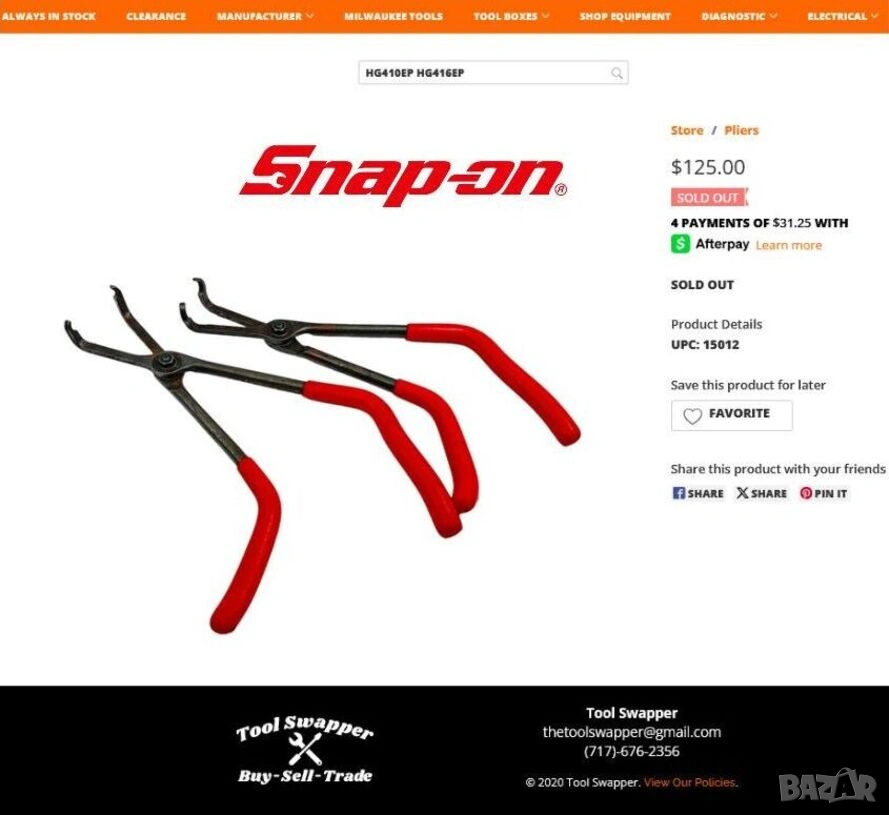 • АРТИКУЛ: Професионални Специални Удължени КЛЕЩИ с назъбени пръстеновидни челюсти и дръжки тип пистолет; (SNAP-ON Pistol Grip Long Reach Line & Hose Pliers HG410EP & HG416EP Specialty Tools American-made Product NOS);