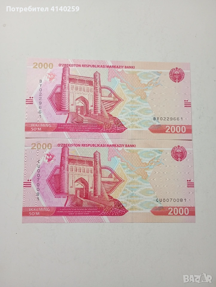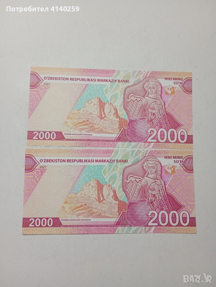 УЗБЕКИСТАН БАНКНОТИ 2000 СУМА 2021 Г ЦЕНА ЗА 2 БРОЯ СЪСТОЯНИЕ НОВО ПОЛУЧАВАТЕ СНИМАНИТЕ БАНКНОТИ РАЗГЛЕДАЙТЕ ДРУГИТЕ МИ ОБЯВИ ДА КОМБИНИРАТЕ ДОСТАВКА ЕКОНТ ЗА ВАРНА ЛИЧНО