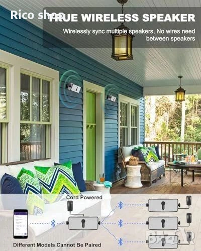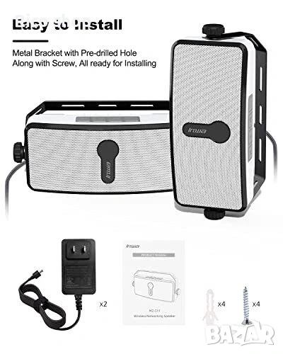 Inwa Bluetooth външен високоговорител, за стенен монтаж, водоустойчив IPX5, безжичен, синхронизира до 100 високоговорителя, безпроблемно се свързва с телефон, компютър, Echo Dot, 2 броя