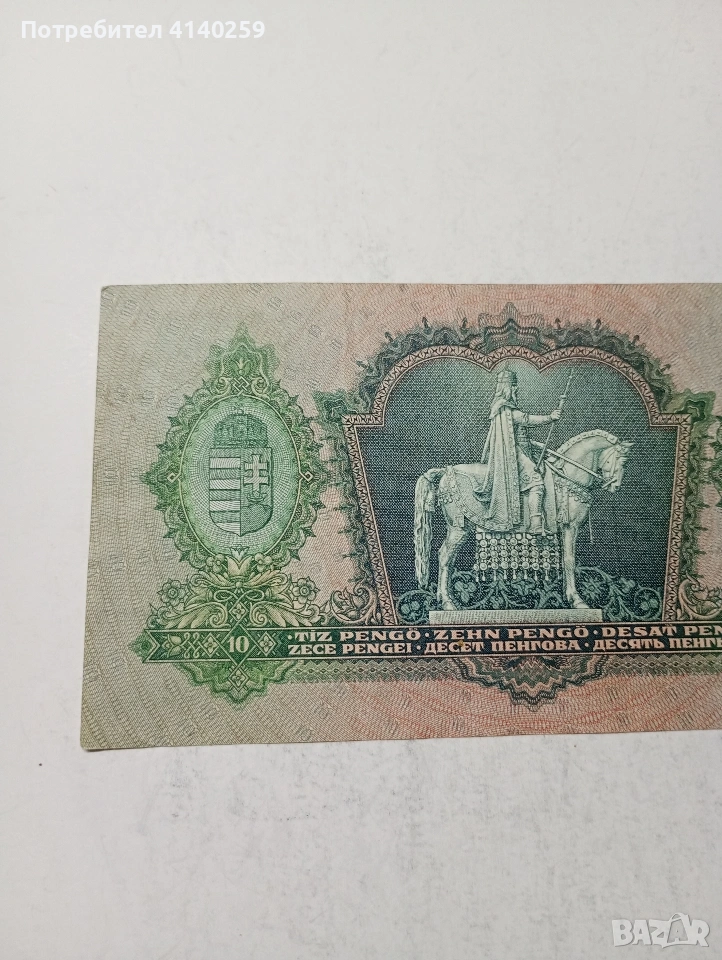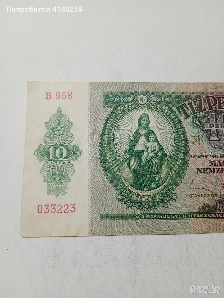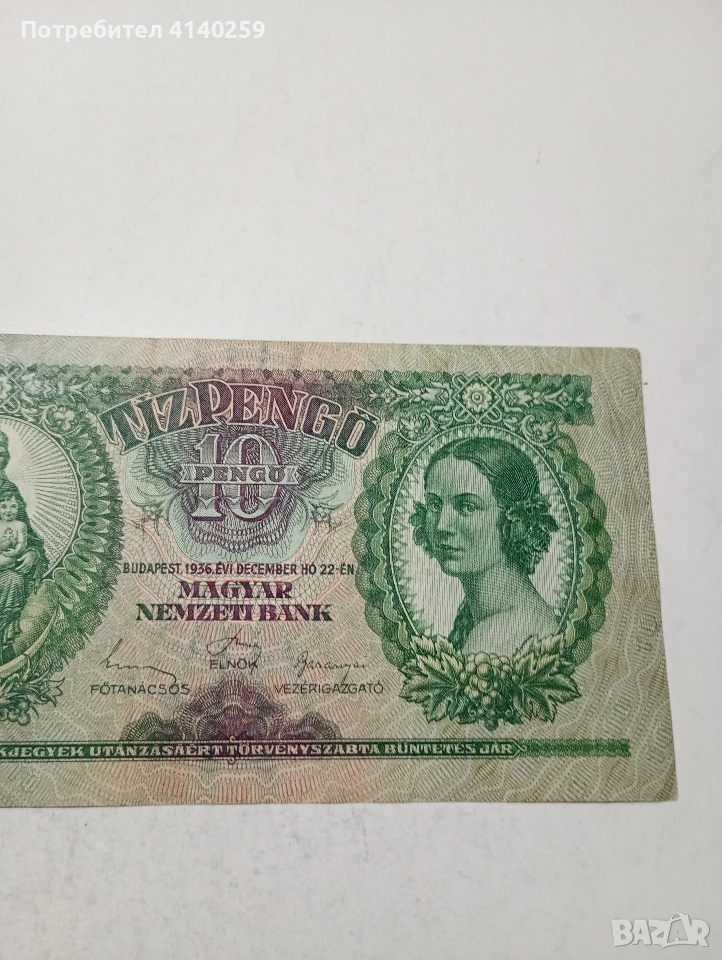 УНГАРИЯ БАНКНОТА 10 ПЕНГЬО 1936 Г СЪСТОЯНИЕ ВИДИМО ПОЛУЧАВАТЕ СНИМАНАТА БАНКНОТА РАЗГЛЕДАЙТЕ ДРУГИТЕ МИ ОБЯВИ ДА КОМБИНИРАТЕ ДОСТАВКА ЕКОНТ ЗА ВАРНА ЛИЧНО