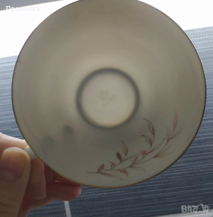 Декорът е вътрешен на чашката. Клеймо Volkstedt Thüringen. Прозиращ, фин порцелан,