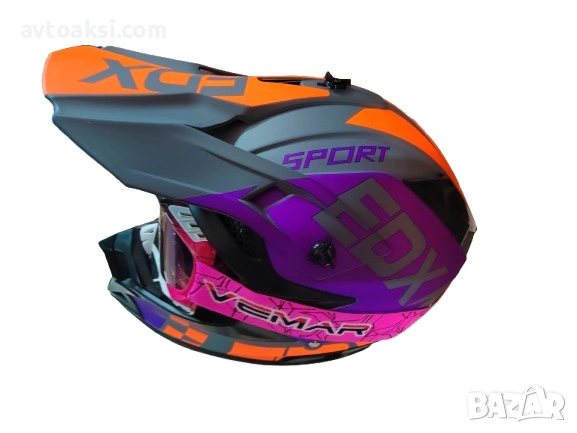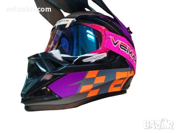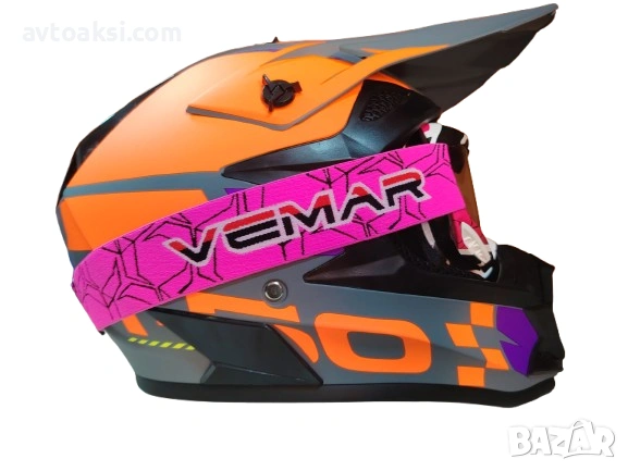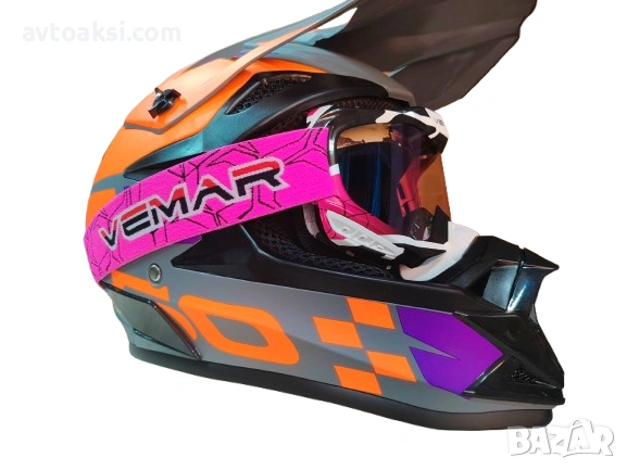 Каска Крос Мотор/Скутер/Бъги/Вело/АТВ с Очила Vemar