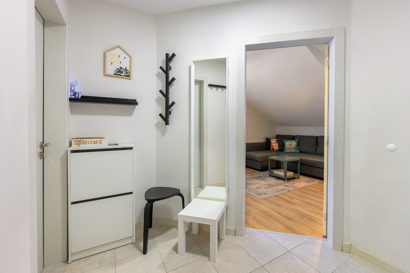 Жилището се намира на 4-ти етаж от 5 в добре поддържана сграда и е напълно обзаведено до последния детайл, готово за нанасяне или отдаване под наем без необходимост от допълнителни инвестиции.
