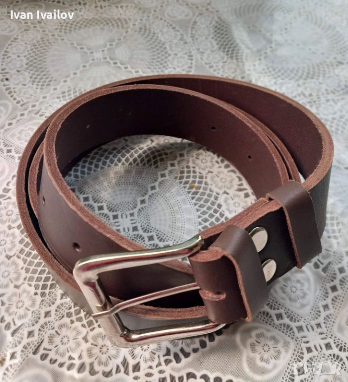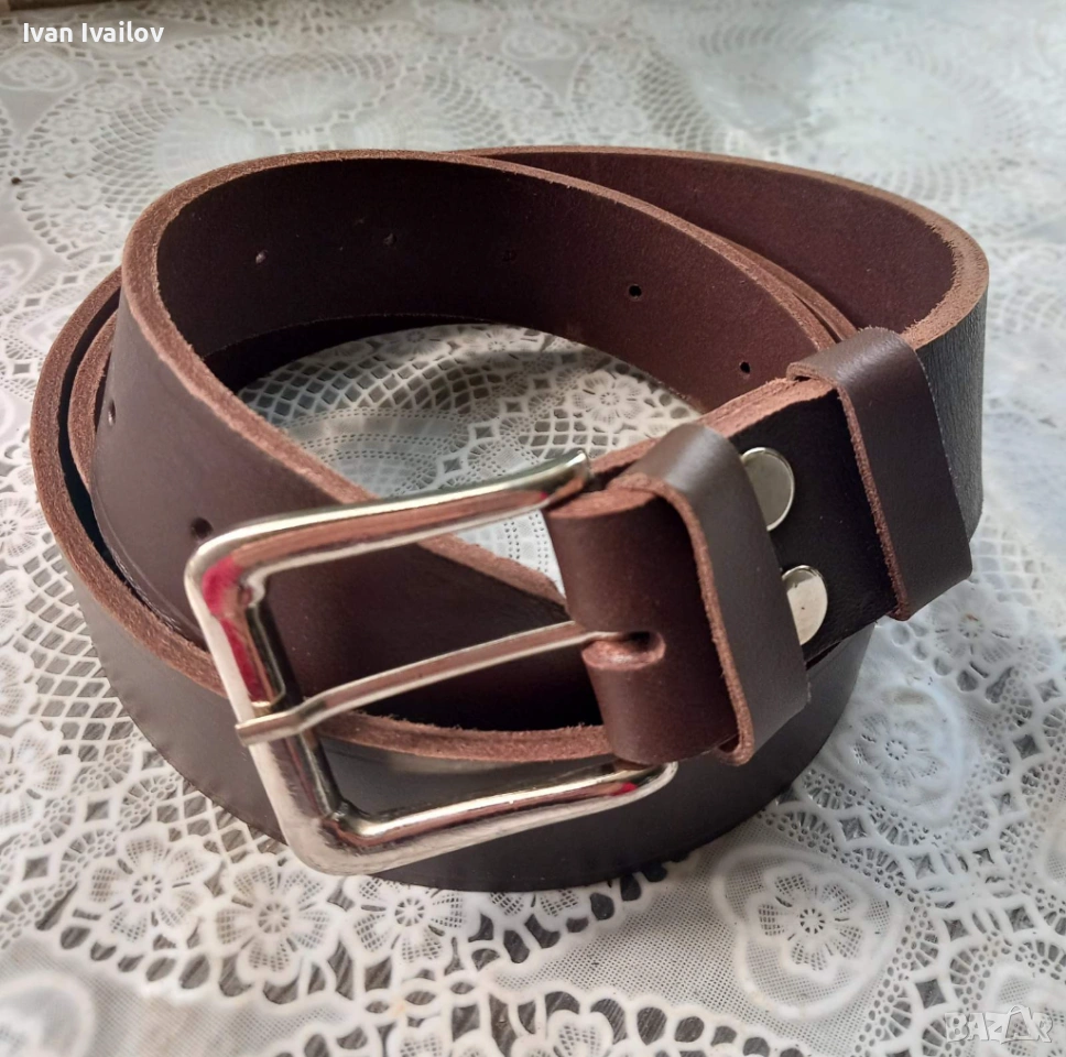 Продавам нов мъжки колан, ръчна изработка от качествена естествена кожа. Кожата е много плътна и здрава, няма да се напука или разтегне. Цветът е дълбок тъмен шоколад.
