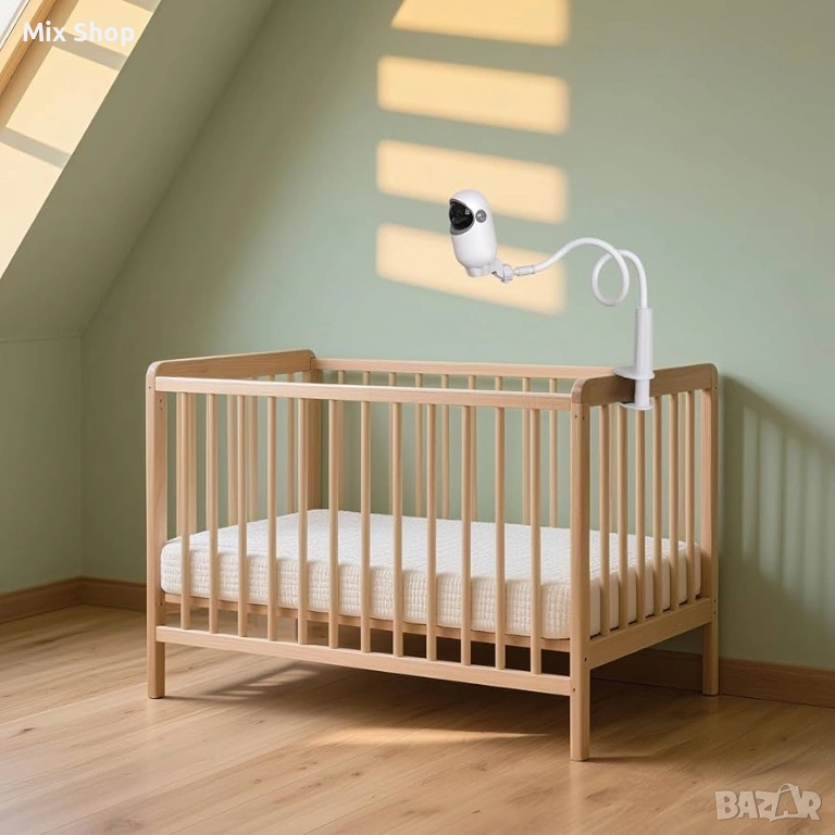 Държач за бебешка камера (бебефон). Изключително практично решение, което ви позволява да монтирате камерата навсякъде, без да пробивате стени.