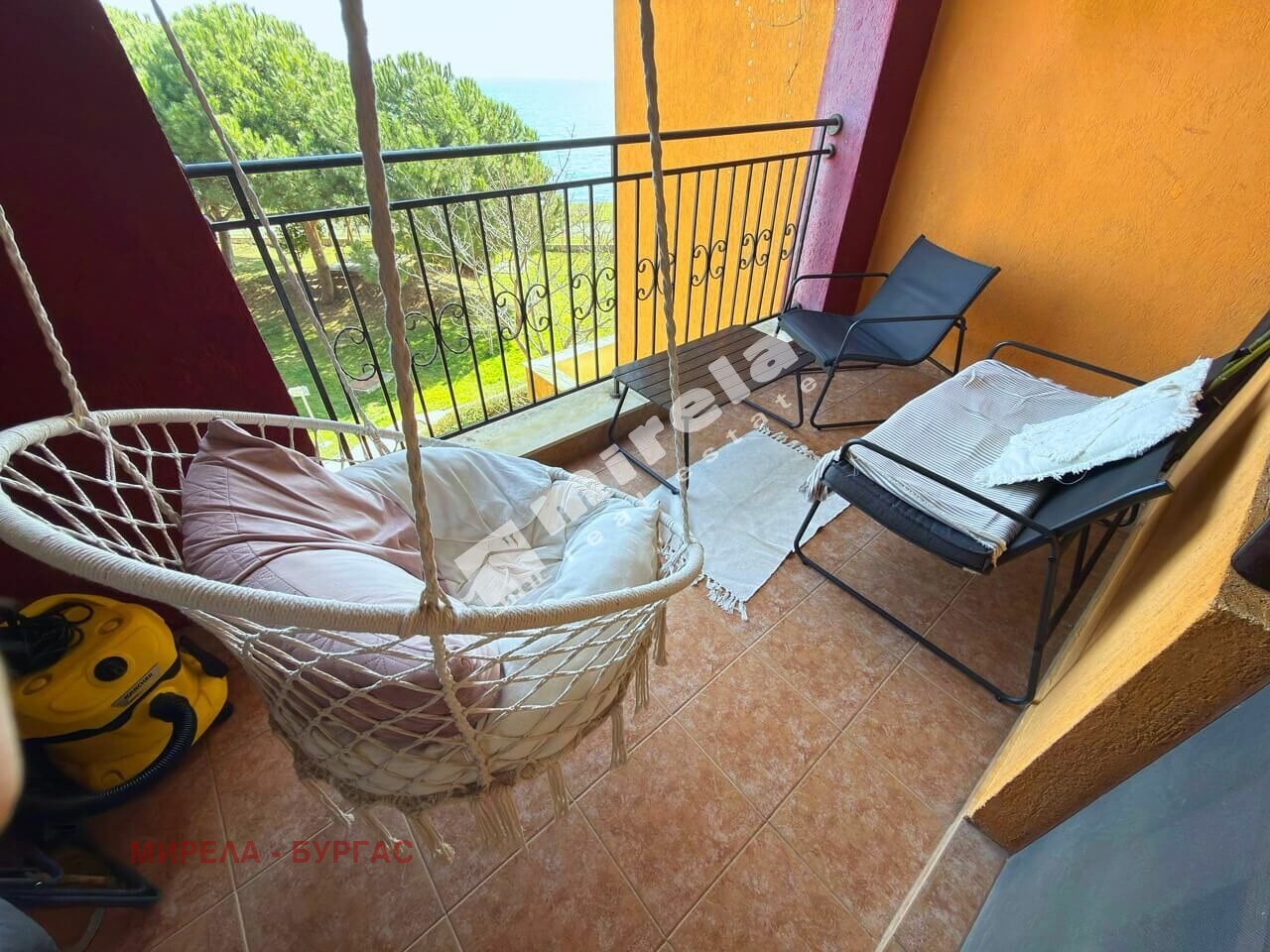 Първа линия с гледка море; Имотът има жилищен статут; Има надземно паркомясто; Сградата има асансьор; Продава се с обзавеждане, което подлежи на уточнение; Има физическа охрана; ЕТАП НА СТРОИТЕЛСТВО: разрешение за ползване (Акт 16); ОТОПЛЕНИЕ: климатик; Има 1 балкон/тераса; С довършителни дейности; Има такса поддръжка; Непреходен; Целогодишно ползване; ВИД СТРОИТЕЛСТВО: тухла; ГОДИНА НА СТРОИТЕЛСТВО: 2000 г.; ИЗЛОЖЕНИЕ: гледка към морето; СПАЛНИ: 2; БАНИ: 1; ДОГРАМА: Алуминиева