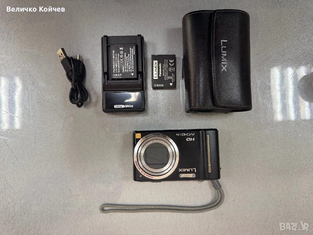 В комплект с карта памет 4Gb Panasonic,3 батерии,зарядно с лед индикатор на заряда и удароустойчива кожен калъф!Цената е крайна!