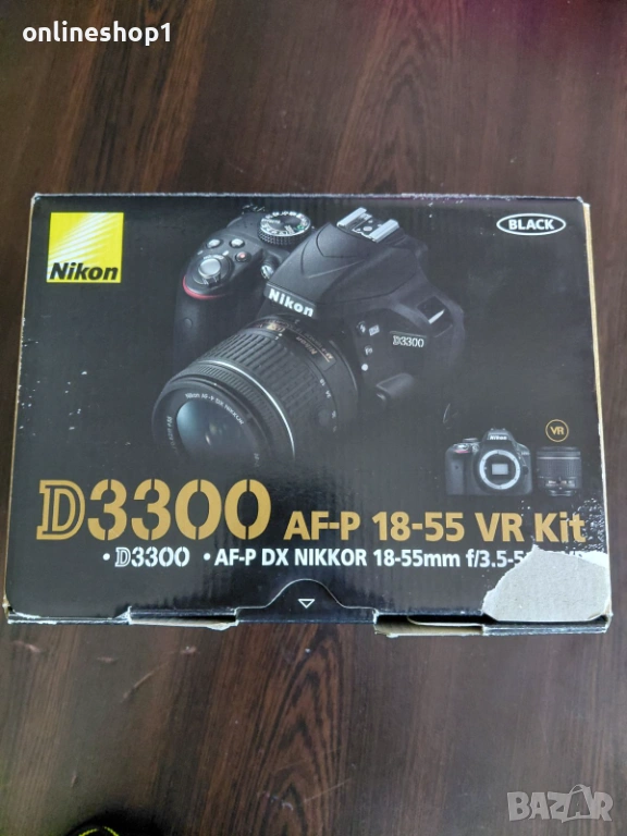 Nikon D3300 24.2 мегапиксела на 16 000 снимки, с китов обектив Nikon AF-P DX Nikkor 18-55mm f/3.5-5.6G VR. Апарата и обектива са добре запазени и поддържани. Комплекта включва оригинална кутия, ръководство на български, сенник, капачки, оригинални батерия и зарядно. Батерията е в отлично състояние. – Цена – 200 евро