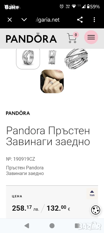 оригинален пръстен Пандора → Обява 54123583