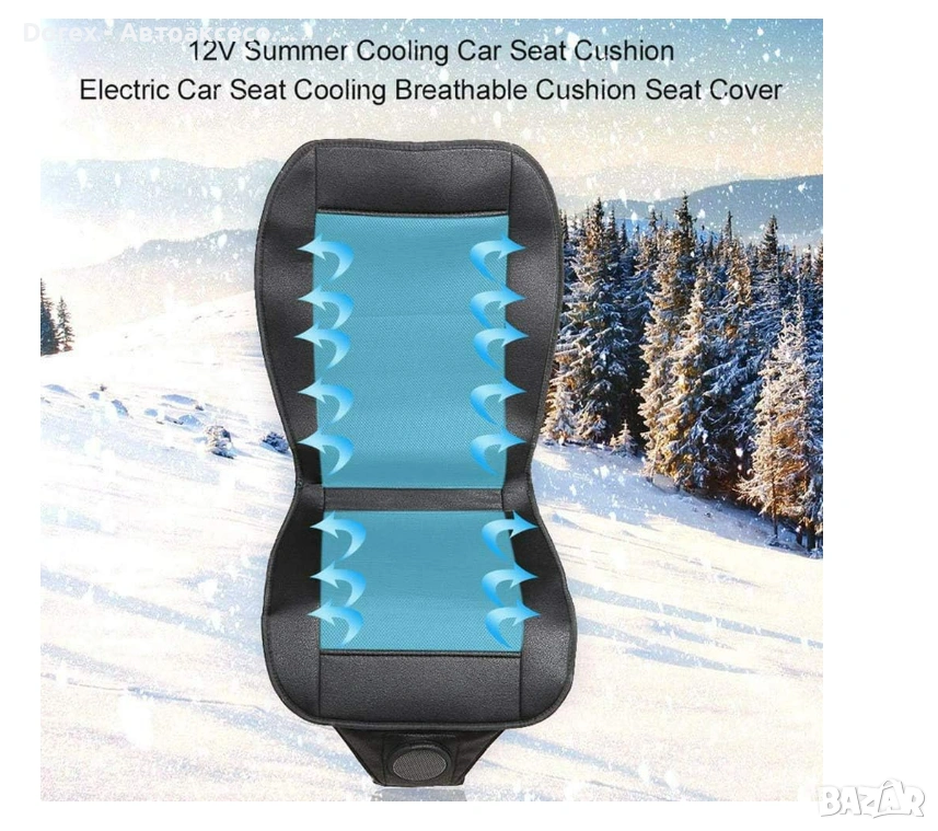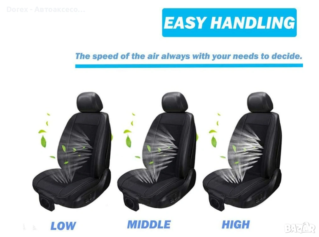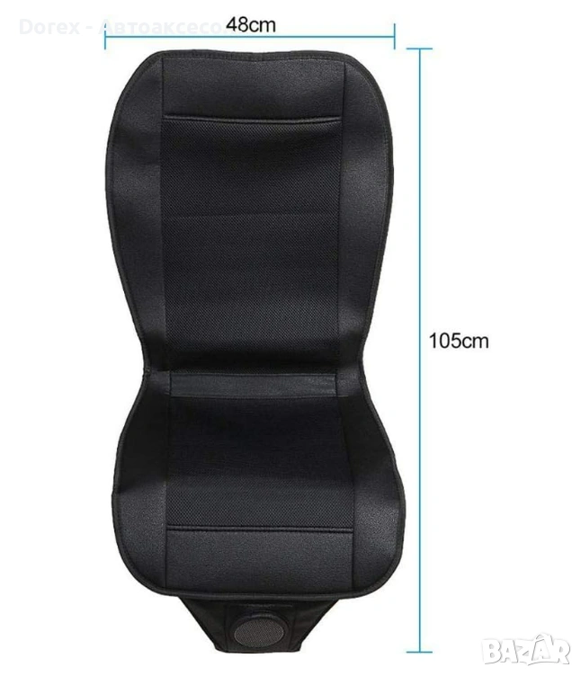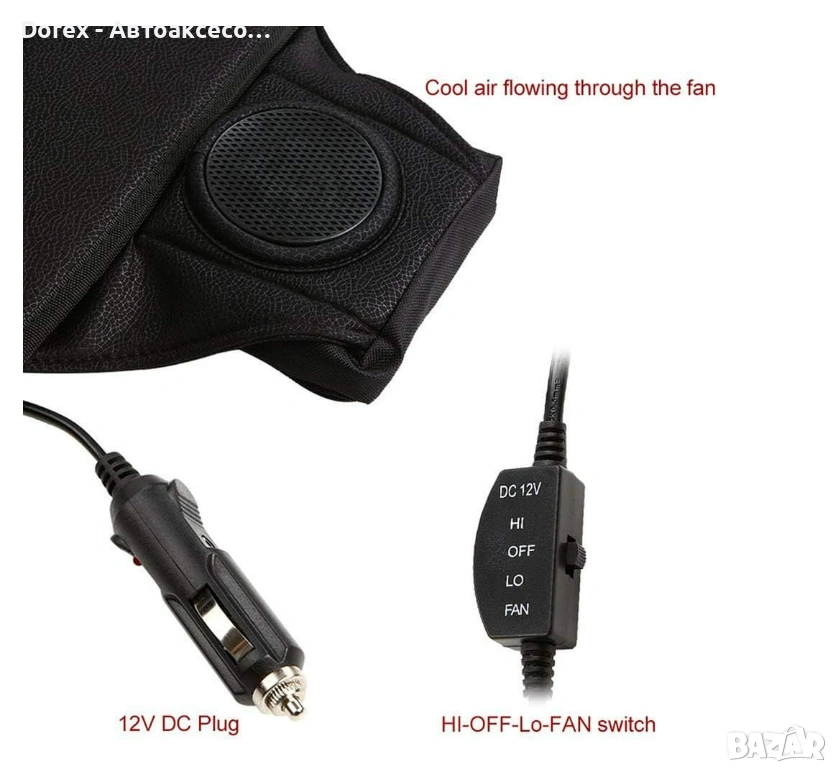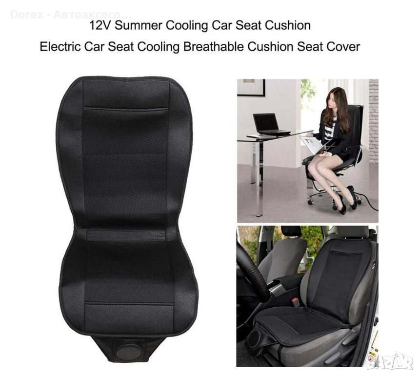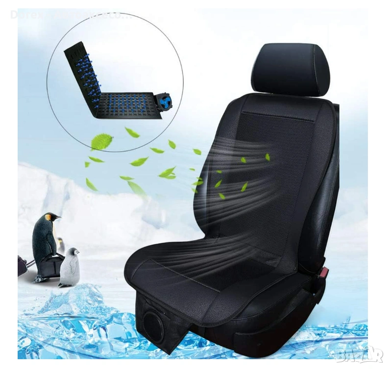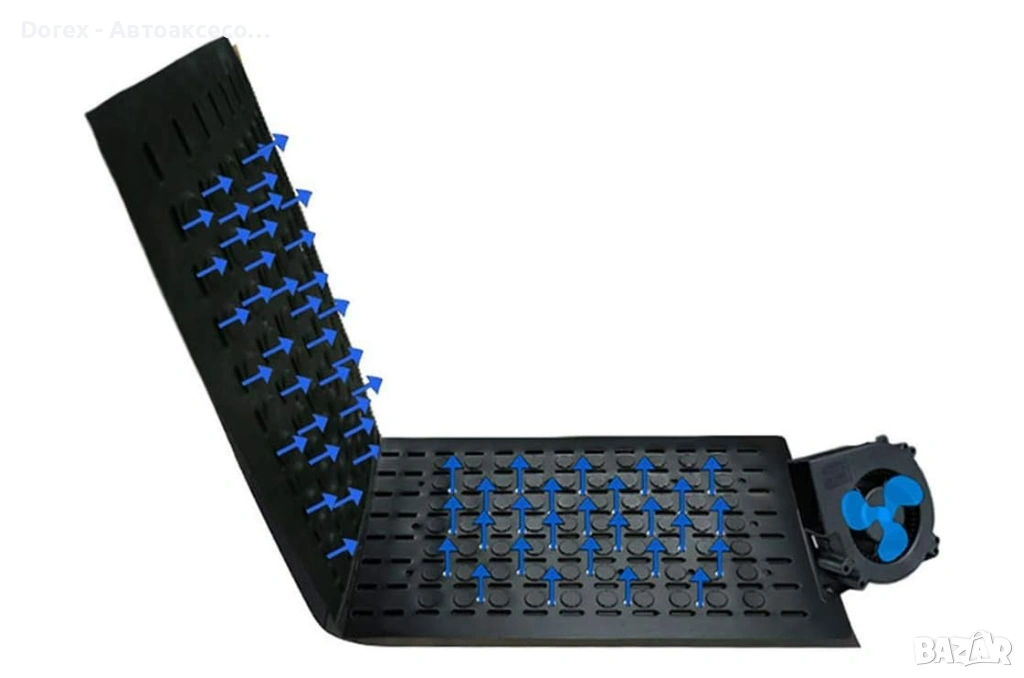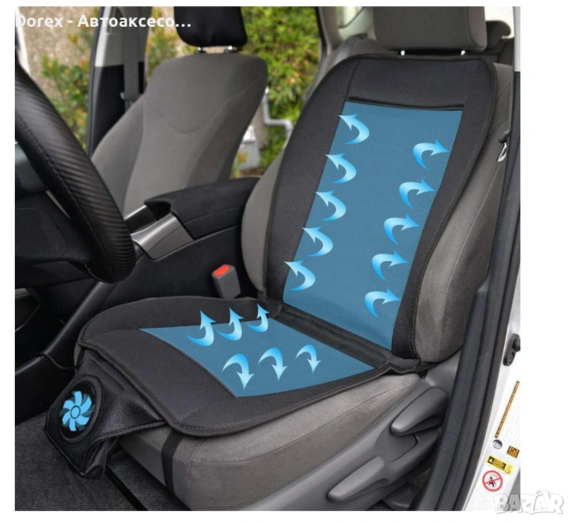 Подложката разполага с вграден вентилатор, който засмуква въздух и го разпределя равномерно през специално проектирани въздушни канали. Това създава приятен охлаждащ ефект и подобрява циркулацията на въздуха между тялото и седалката.