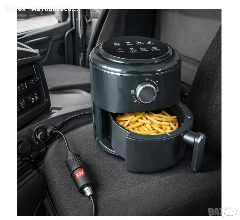 Пригответе вкусна и здравословна храна дори по време на път с този Air Fryer 24V за камион. Създаден специално за шофьори на камиони, бусове и други превозни средства, той предлага удобство, компактност и ефективност в едно устройство.