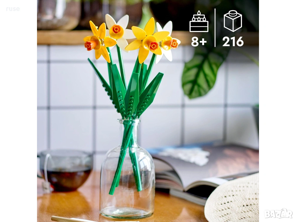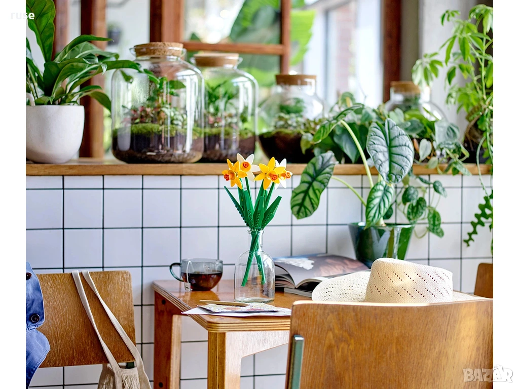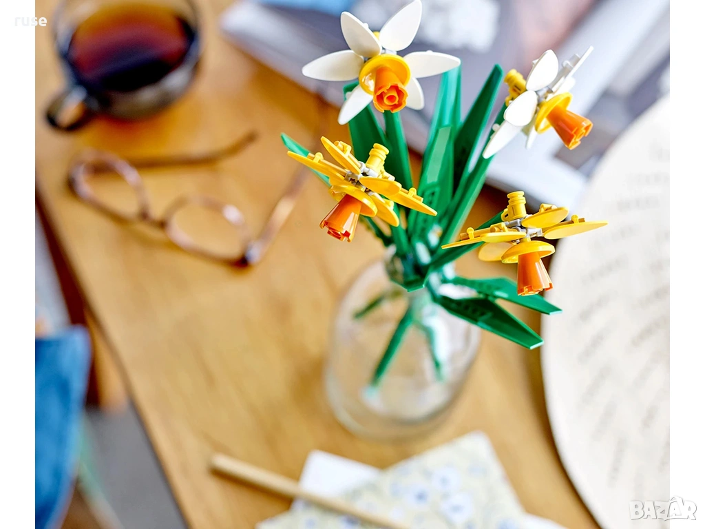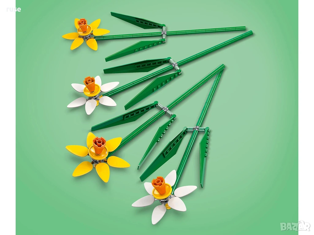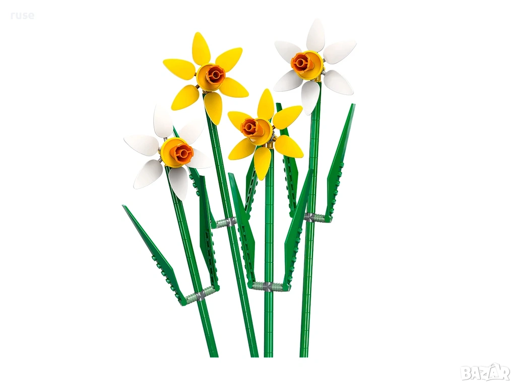 Дайте възможност на любителите на цветя над да създадат букет с нарциси LEGO® от тухлички и да го изложат на показ гордо като флорална украса.