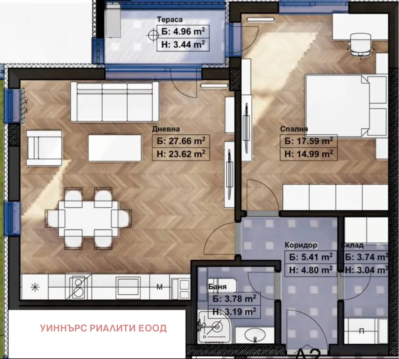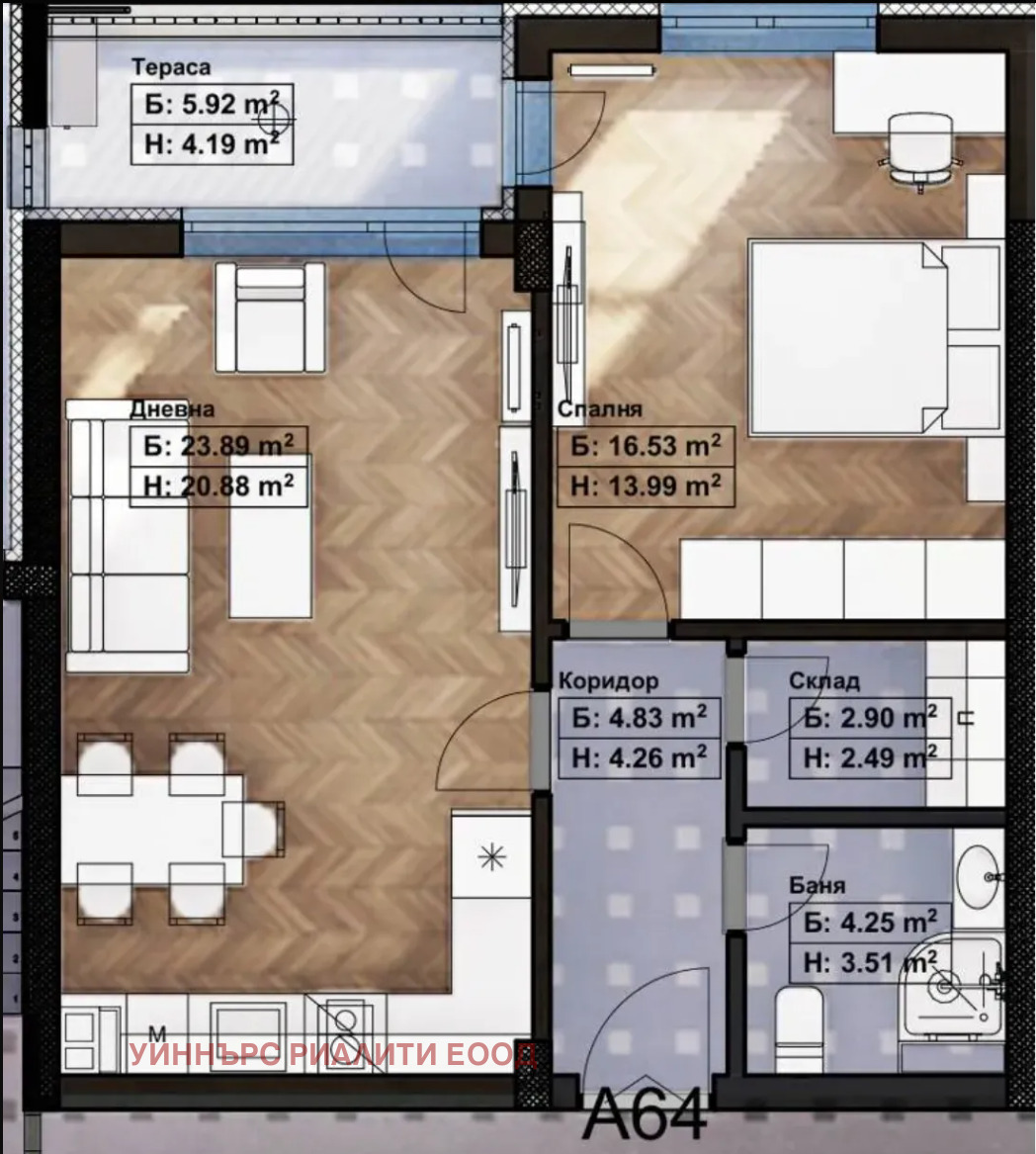 WINNERS REALITY представя в сграда с Акт 16 апартамент с една спалня в район Връбница, метростанция Бели Дунав, магазин Била, изградена инфраструктура, множество училища в района- 61 ОУ, 74 СОУ, тенис корт, фитнес ...